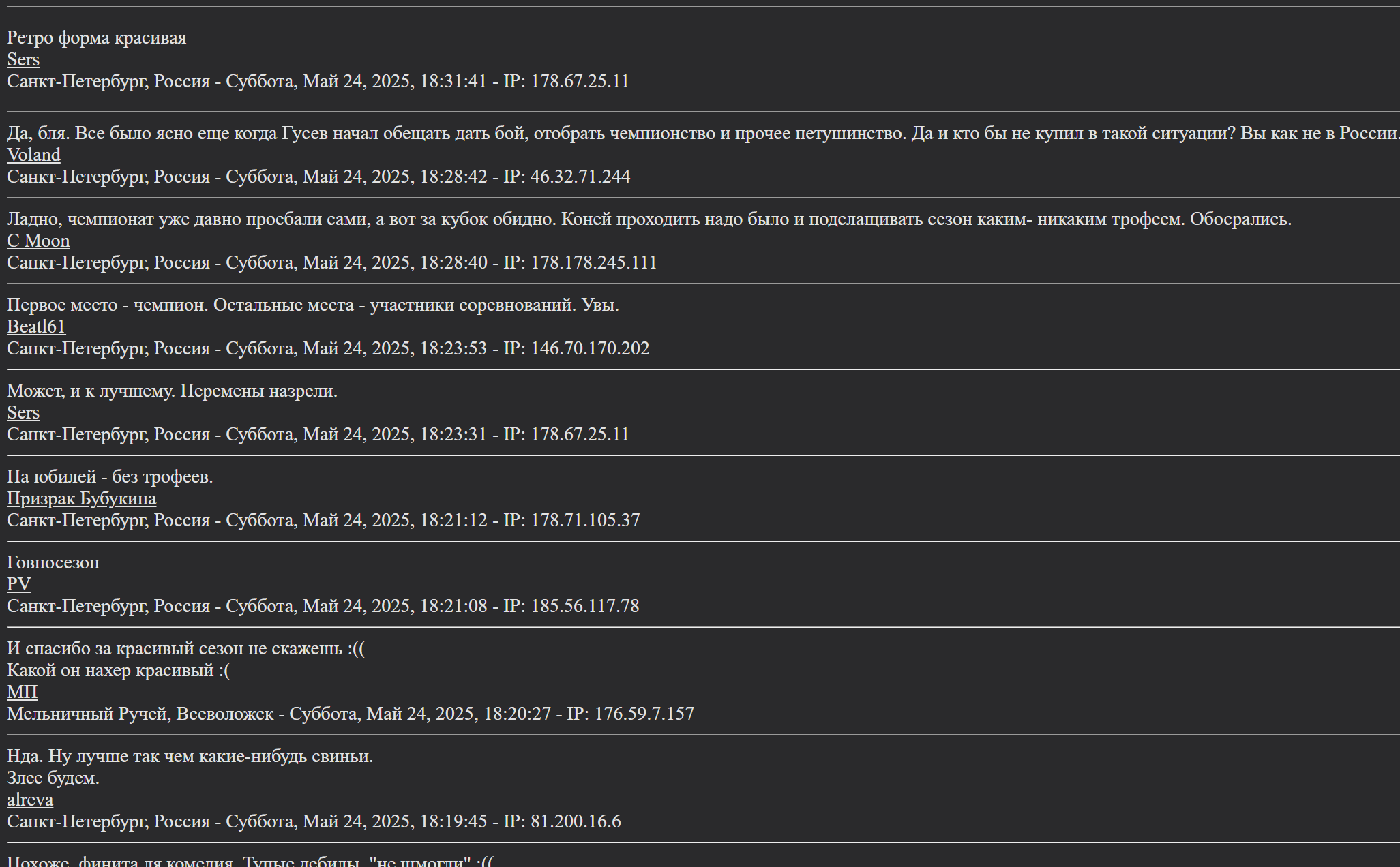 Сколько же обиженок итт Столько лет сосали зенитовский хуй А тут команда первый раз оступилась И гиены налетели толпой и гогочут