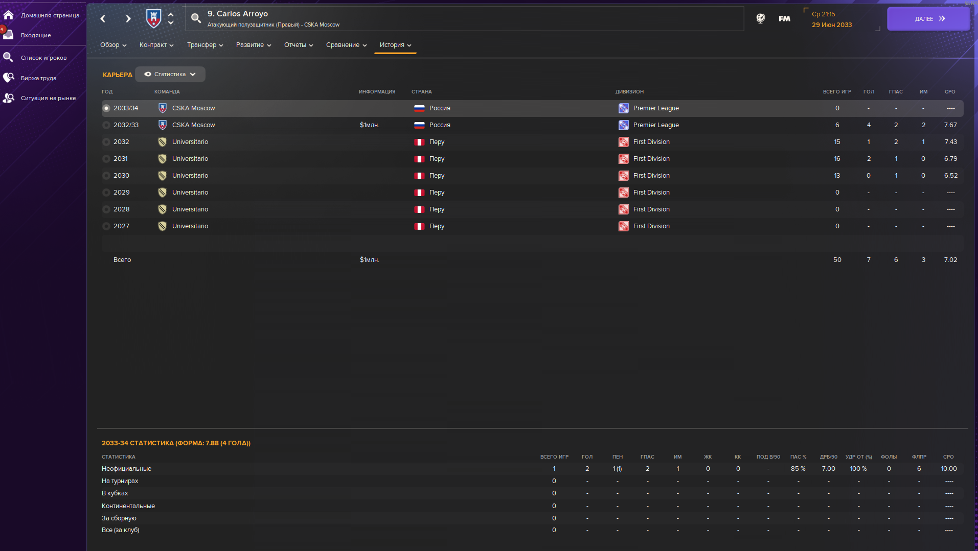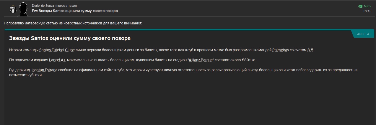 К слову, у меня в составе лучший игрок Южной Америки - два года подряд. Аргентинский нападающий, которого до сих пор не вызывают в сборную. До него такое делал только Неймар, жду звонки от шейхов.