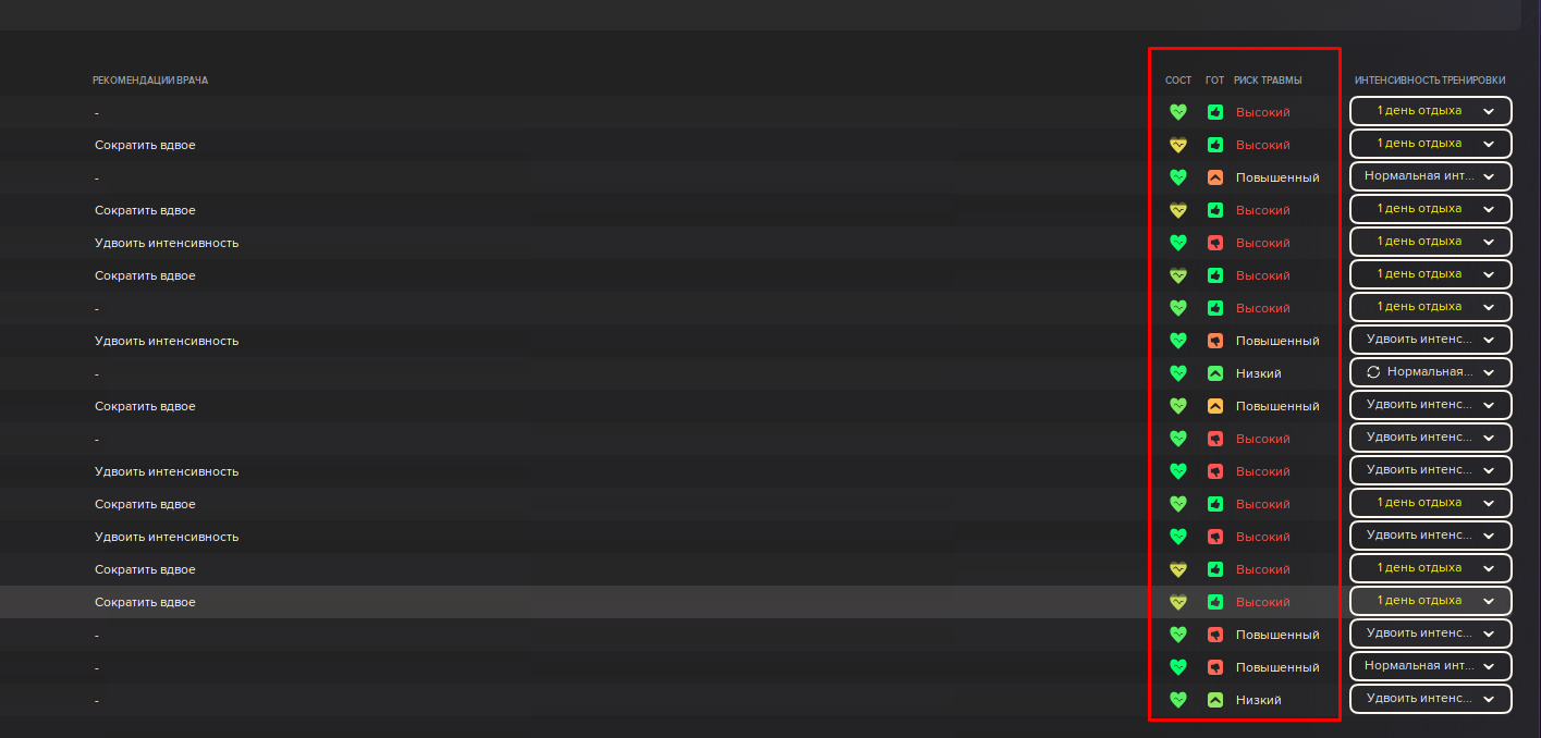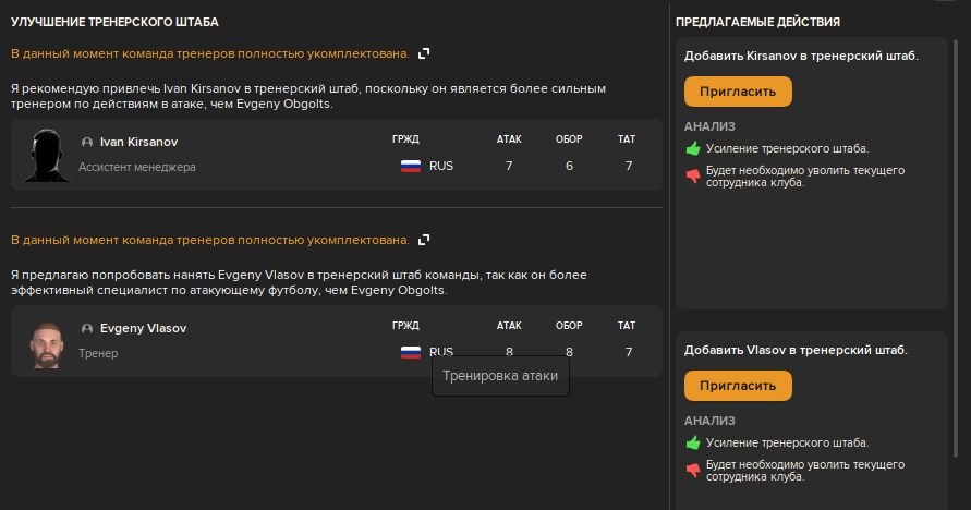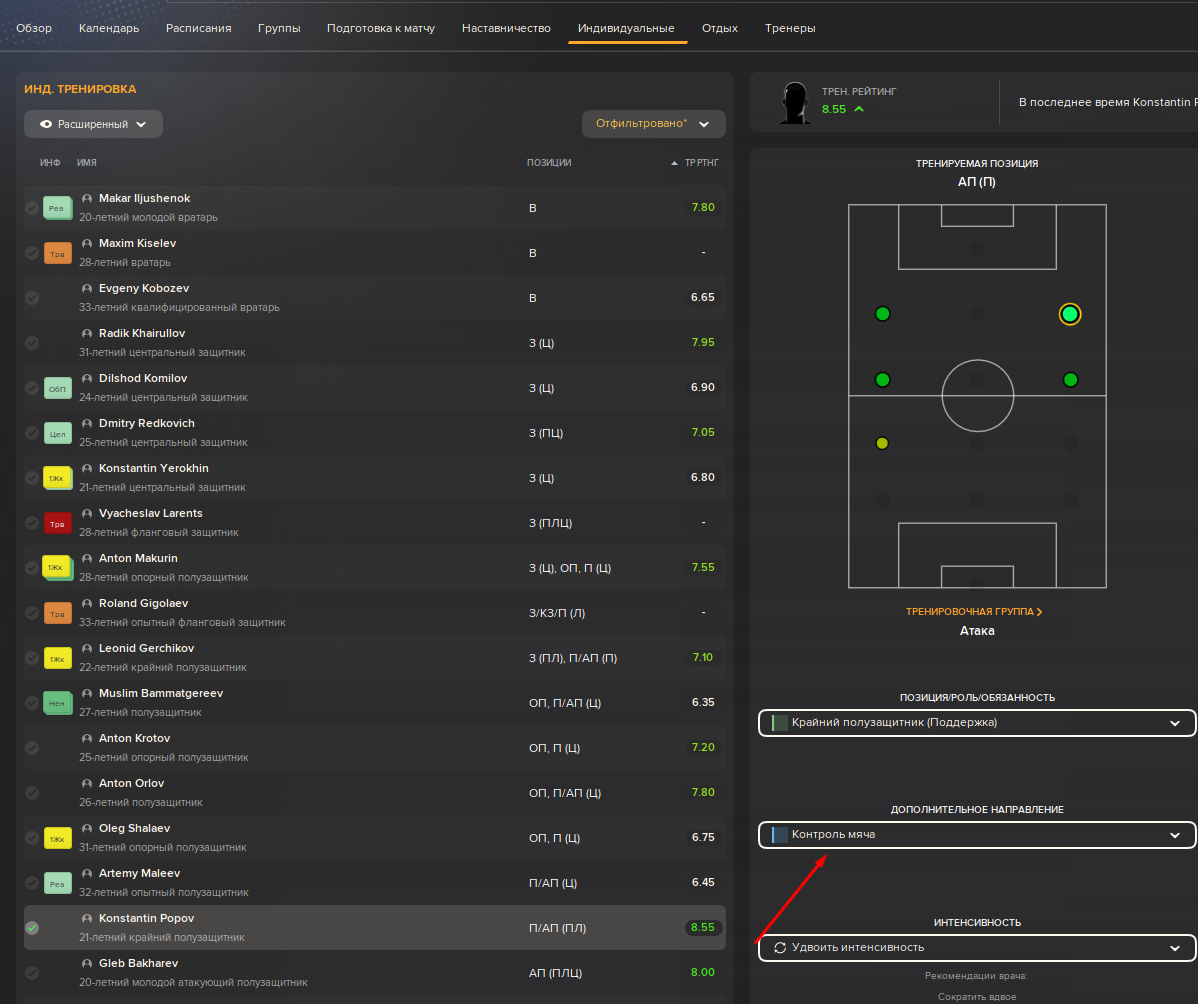 Тренировки пока что сгенерили тренеры в команде, я туда еще не лез. Надо будет ознакомится и разобраться.