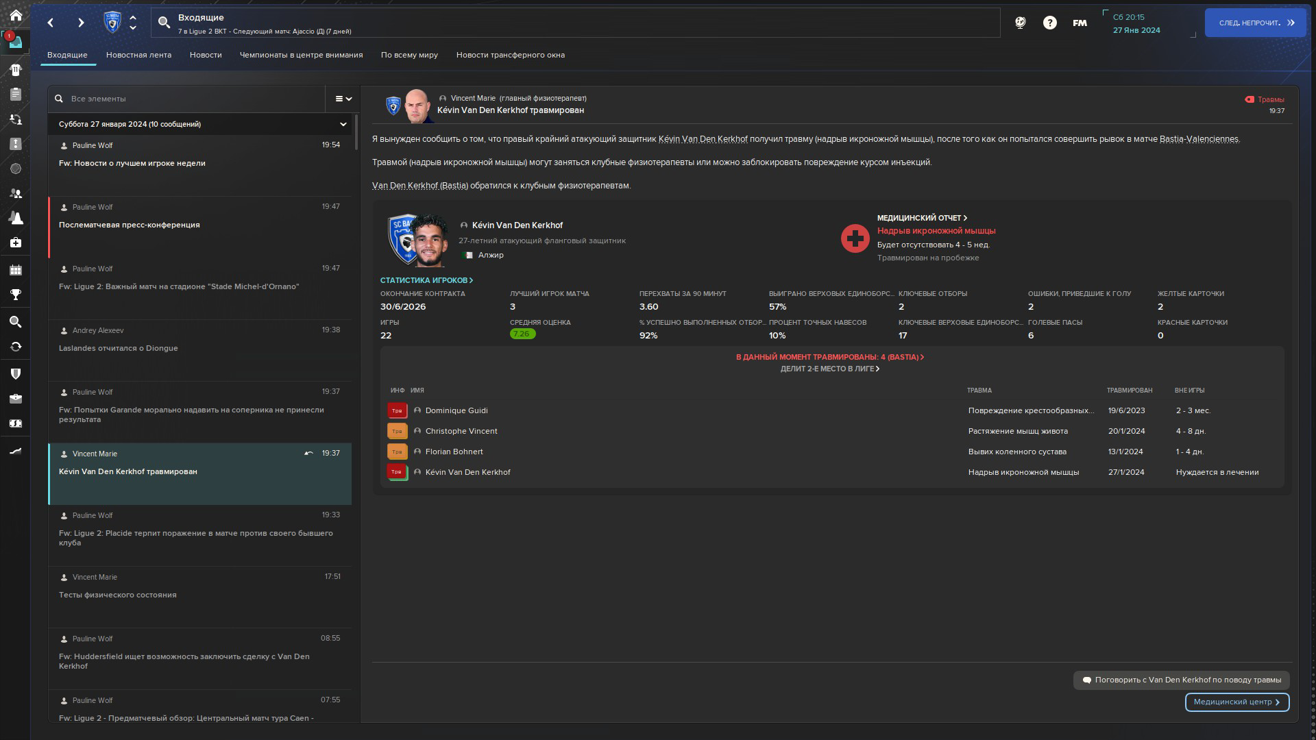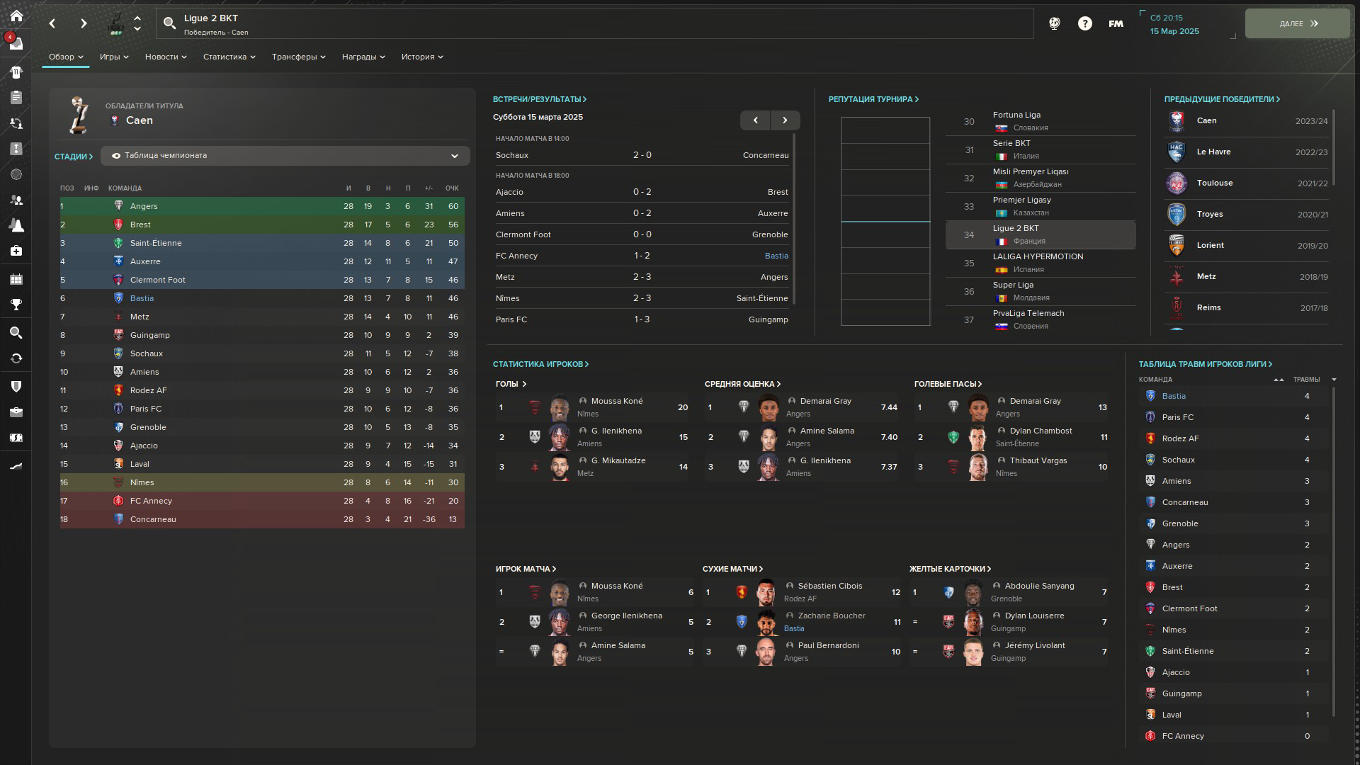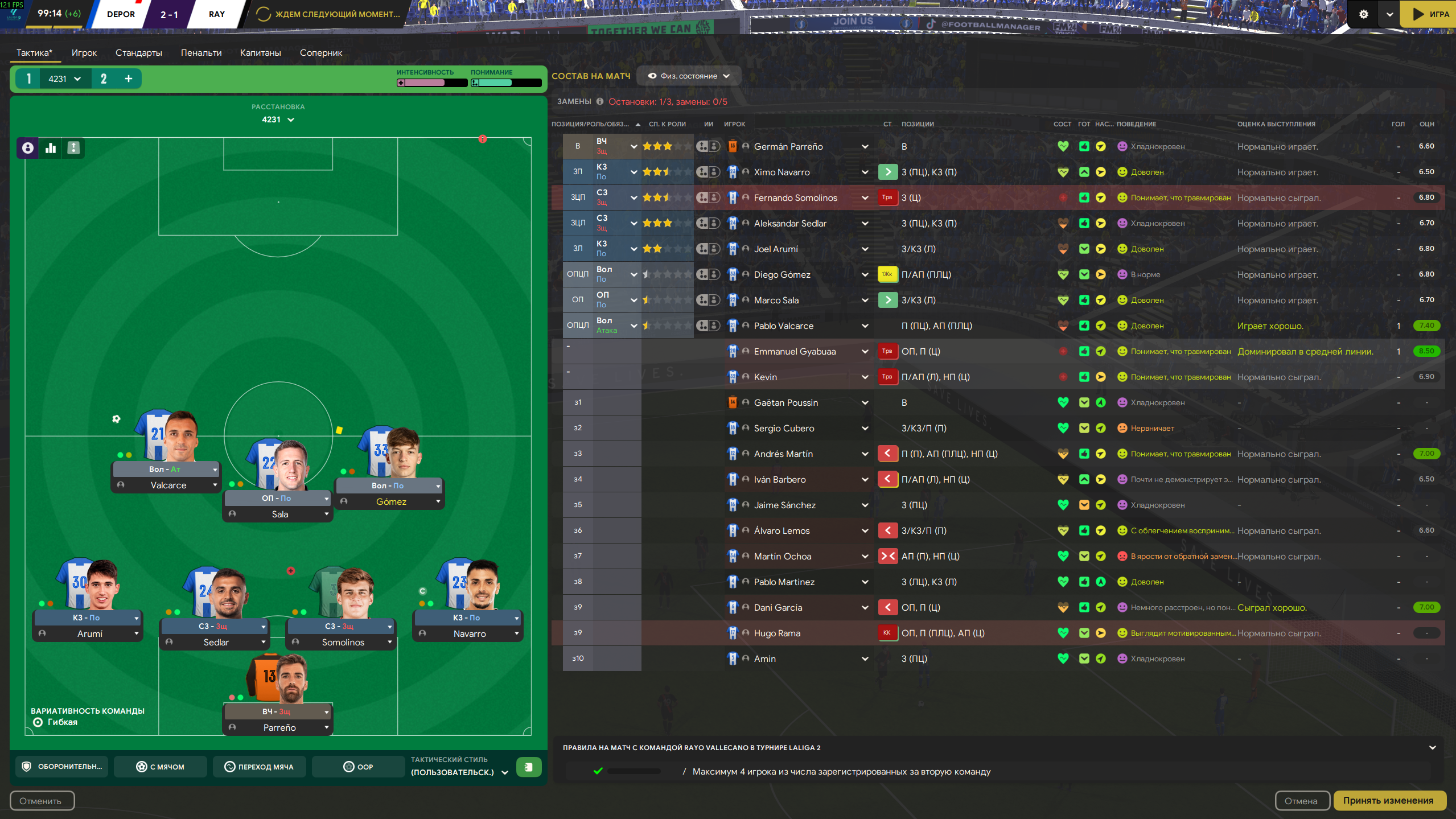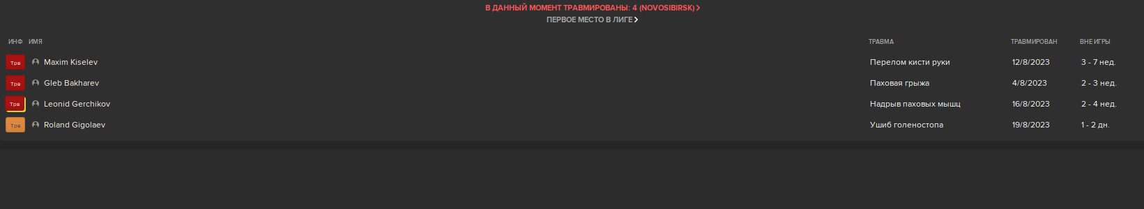 Т совет на будущие. Если вдруг, у тебя хороший мед персонал, ты поставил крутые тренировки, а игроки ебаные все равно ломаются просто сам автоматически давай им отдых после матча на день другой. Лучше они не потренируются, но будут здоровы, нежели наоборот. Этот банальную фичу почему-то почти никто не озвучивает, а она очень сильно упрощает игру. Так же как и полирование состава. Лучше в ебать одну игру вторым составом, за то все буду живы здоровы.