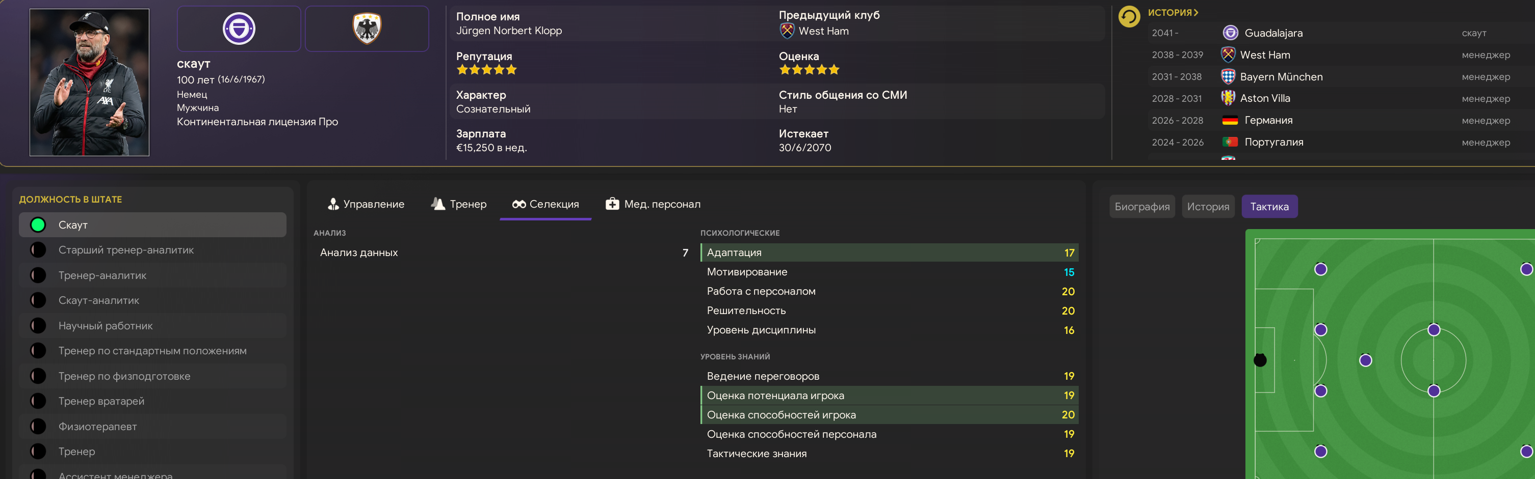 По поводу персонала - я сразу решил брать крутых, они благо дешего стоят. Но там много вакансий, я так понимаю не все обязательны и нужные. Я решил главного скаута добрать себе, главного физиотерапевта, крутого тренера по физухе и вратарского тоже нашел +-, сделал им предложения, вроде приняли, но "еще нужно подумать, ответ дам чуть позже". Вот жду их всех.