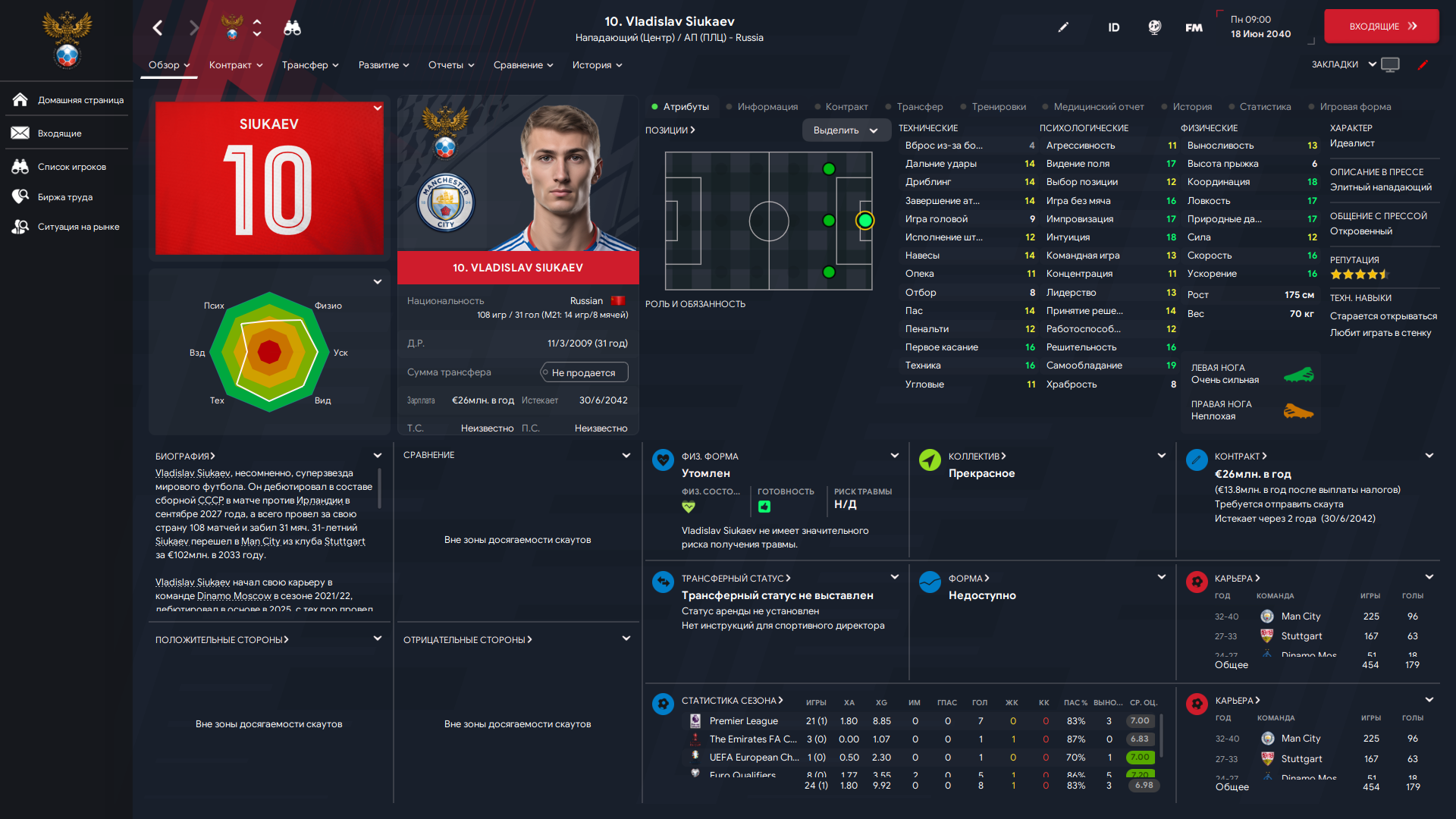 И про молодёжку. Понятно, что им нужен хороший персонал, но после определенного возраста, типа 18-19 лет, не стоит их мариновать в молодёжке. Им нужна практика. И не такая, как в педриде с Эндриком с 200 минут за сезон, а полноценное игровое время. Если ты сам им их дать не можешь, аренды. Трансферы с правом выкупа. Иначе он просто скисают нахуй И сюда же. Я так онял ты в рф начал? Тогда прям лютых бистов и тем более часто не жди. Даже с топ топ базой и персоналом будут редко появляться игроки выше 160па+. Тут можно сказать спасибо охуенной системе рейтинга наций. Мда.