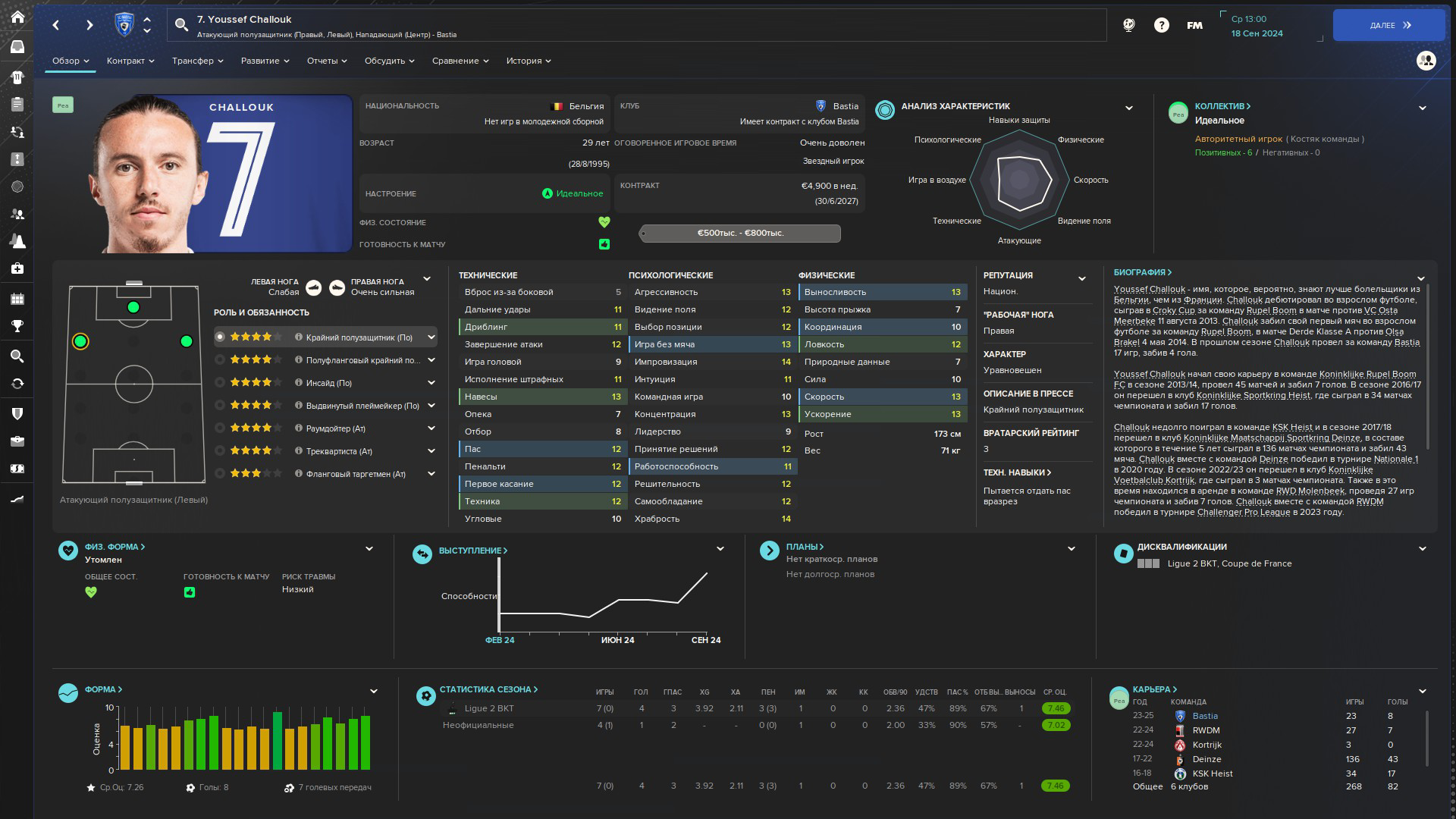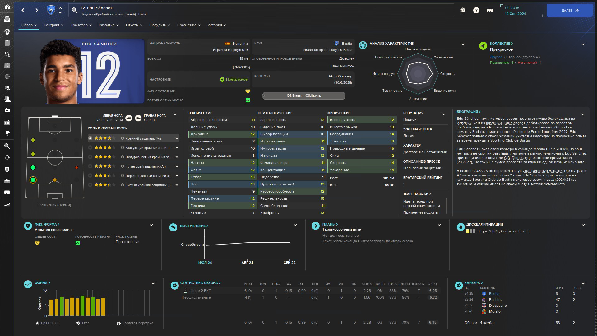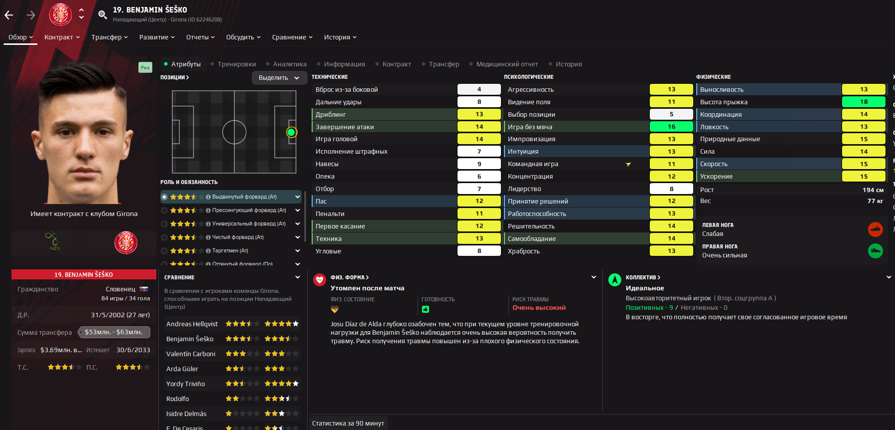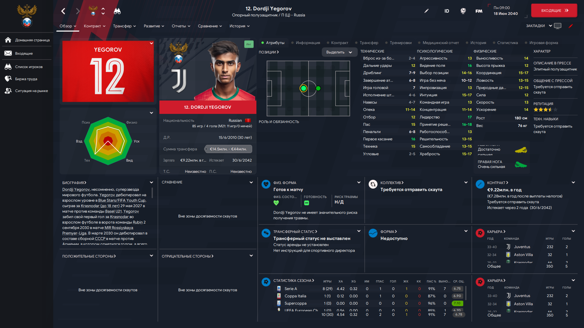 И по статам тоже особо не обманывайся. Например есть смешная характеристика техника, она не влияет буквально ни на что. Вот прикол да? А завершение как думаешь? Типа чем больше, тем лучше игрок забивает? А вот и нихуя. Это лишь то, как игрок способен подставить ногу/голову в пустые ворота. При этом какая нибудь храбрость для цз гораздо важнее, чем отбор. О как. Ну и база. Самая важная характеристика это скорость. Лучше тупой и быстрый, чем медленный, но умный. За редкими исключениями, когда ты можешь одного футболиста со скоростью 7 держать в центре поля, но у него там угловое/стандарты будут 17-18.