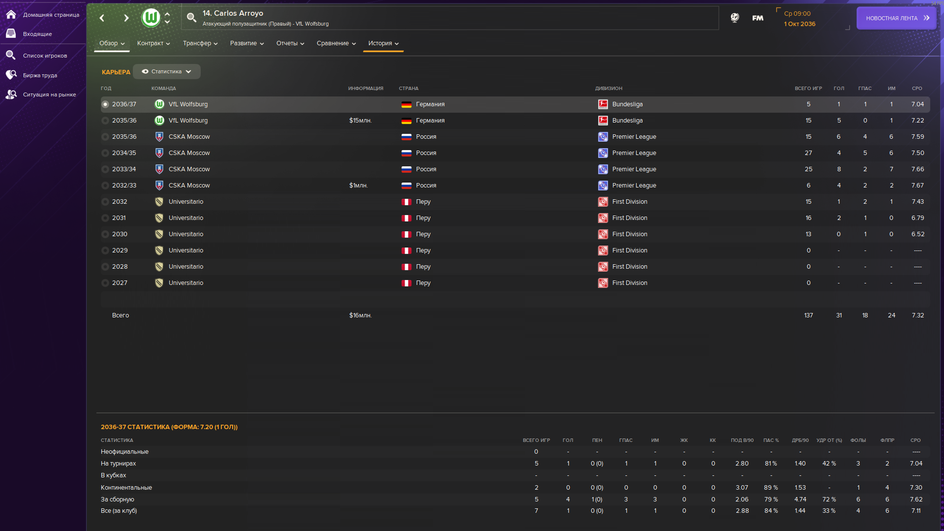 Надоело дрейфовать как говно в проруби без каких-либо надежд на повышение, плюсом ещё Эду Санчес меня подвёл, наныл трансфер после заблокированного мной в какое-то бельгийское говно. Неблагодарная свинья, я ну ладно, не я лично, скауты его нашел, отмыл, в старте место дал, а оно начало воду мутить, теперь вместо меня ВрИО стал вратать, лол. Попросился спасать цскал, после 12 туров болтаются в одном месте от зоны вылета, состав там после двух лет карьеры просто пиздец, основным вратарём стоит, кто бы вы думали? Кариус блядь! Половины персонала тупо нет, три тренера, ноль скаутов, зато состав на три команды, и больше половины хламари бездарные, которым место даже в ФНЛ нужно заслужить. Чувствую, ближайшие трансферные окна выйдут жаркими.
