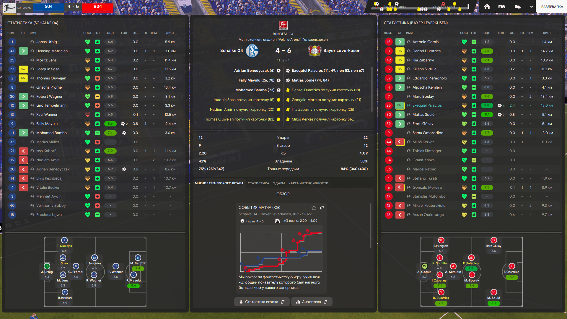 Я вообще не понимаю, почему им так подкручивает. Всегда. В первой игре дома я играл лучше, должен был выигрывать, но отлетел 3-5, не по игре. Отлично понимая какой у меня бэкграунд с Палмейрасом и что мне не дадут выиграть, я на похуй выставил всё в атаку и результат на скринах.