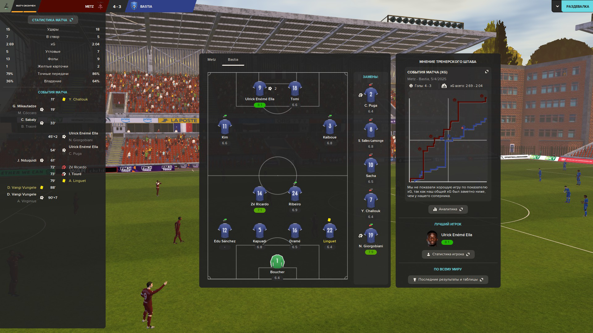 Это какая-то драма спортивная нахуй, Тед Лассо отдыхает, встреча с принципиальнейшим соперником за 6 очков, несколько отмененных голов, бестолковый бегунок, который у меня играет прессингующего форварда делает дубль и прерывает 14-матчевую голевую засуху, из полного говна на яйцах казалось что выкарабкаемся, но судейка продажная, козёл он заряженный за Метц засчитывает явный гол из офсайда, как же горит жопа, сука, ещё один сезон перемешивания кала в пердиве я не вынесу