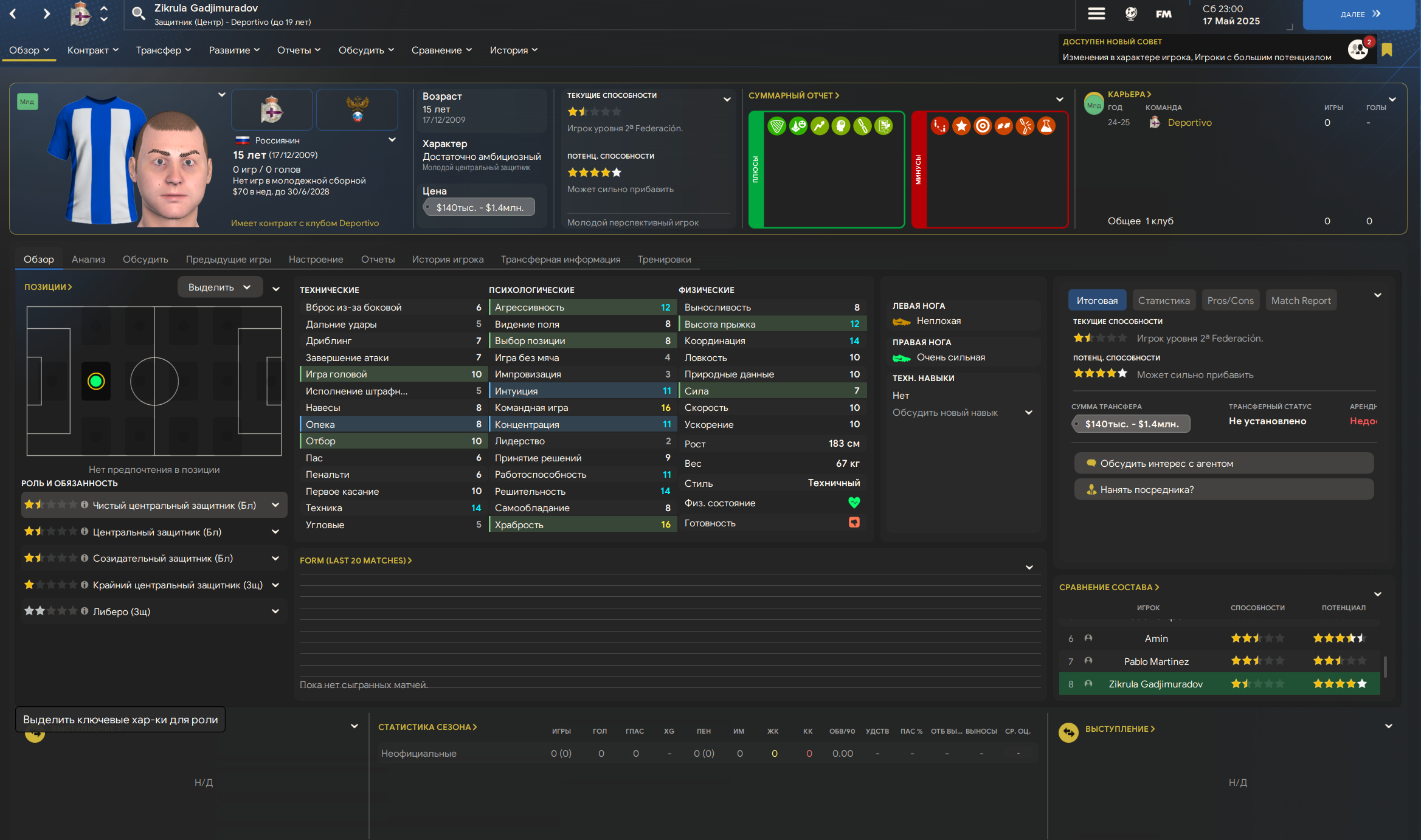 Еще академия уже подарила мне прекрасных регенов, будущих легенд клуба, если не сьебутся - Это техничный вингер Марк Кончейро, которого я переучу играть на левом фланге, и прекрасный храбрый защитник Зикрула Гаджимурадов из Дагестанского села Шамхал-Термен.