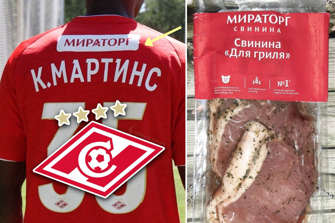 ❗️На форме «Спартака» появилась реклама крупнейшего производителя свинины в России: красно-белые объявили о расширении сотрудничества с агрохолдином «Мираторг» перед стартом нового сезона РПЛ. В рамках партнёрства для болельщиков «Спартака» будут доступны спецпредложения по покупке мяса и других продуктов