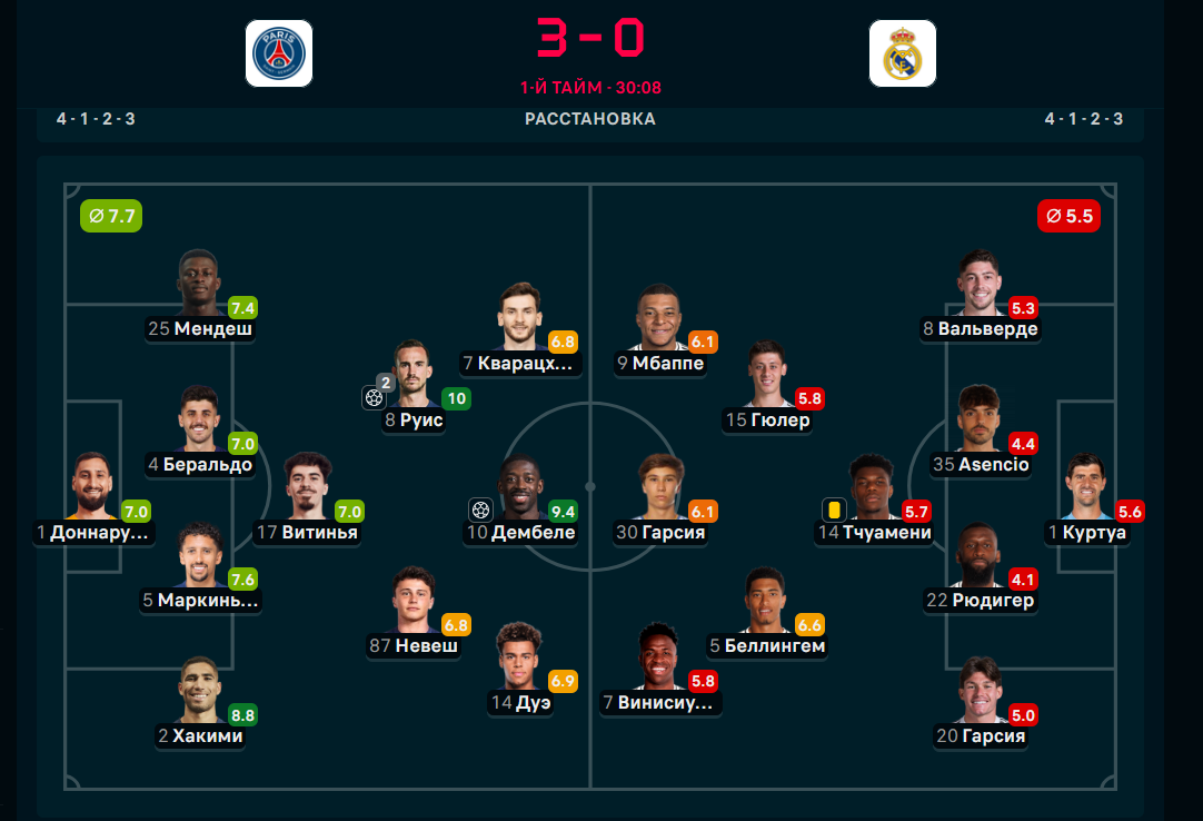 у псж тоже 2 удаления защитников, по сути будет игра про полузащиту и нападение. И если полузащита у реала норм, то атака явно хромает. Гарсия есть, винисиус дно, родриго на чемоданах, мбаппе нестабильный