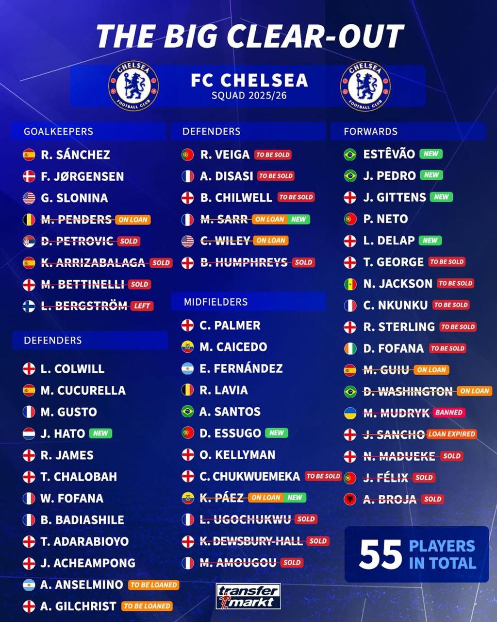 Вратаря осталось всего 3. В защите и атаке планируют избавиться (постоянно или временно) от 5 игроков, а еще не против отправить на все 4 стороны Чуквуэмемакаку.
