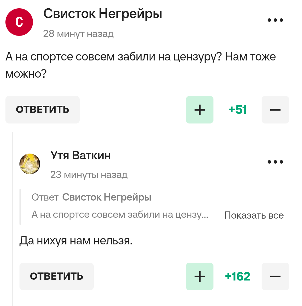Здесь мы обсуждаем МИР - Чемпионат по футболу Великой России, пидор. Радуемся голам простых русских пацанов, таких, как: Кордоба, Бонгонда, Мойзес, Чавес, Роналдо, Мэйби Бейби и Педро. Кладём хуй на прочие убогие премьер-лиги, лиги двух команд, продажные серии и унылые чемпионаты, рассматриваем Дзюбин хуй и анус с различных ракурсов, ебём спермтаковских свиношлюх поедая 33 пельменя, давим ЦСКАЛ, катаемся на Камаро по Калифорнии, смываем зинит и ссым в ебло Ненину, ставим варди, глорим за свой клуб и делимся стопроцентными инсайрами. Последние новости:Победа на классе Спартака, левые пенки в матчах Динамо, ЦСКА и Ахмата. Локо скатал пятую ничью подряд, в этот раз подсуетился Казарцев дав пенальти, переквалифицироованный ВАР в штрафной, скоторого был забит гол Махач калой.Просрочка была попущена лендлордами на глазах своих болельщиков - Зенит снова в гонке, а в таблице от первого до седьмого места всего 4 очка.Впереди 10-ый тур и матчи кубка.