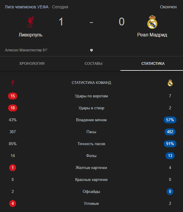 >>3411304 есть такое. По сути Экитике и Собаслай в двоем ебут весь матч. При этом оборона у ливерпуля настолько хуйня, что Карерас только что пол состава в их штрафной обыграл без труда, но почему-то Винисиус и Мбаппе нихуя не делают
