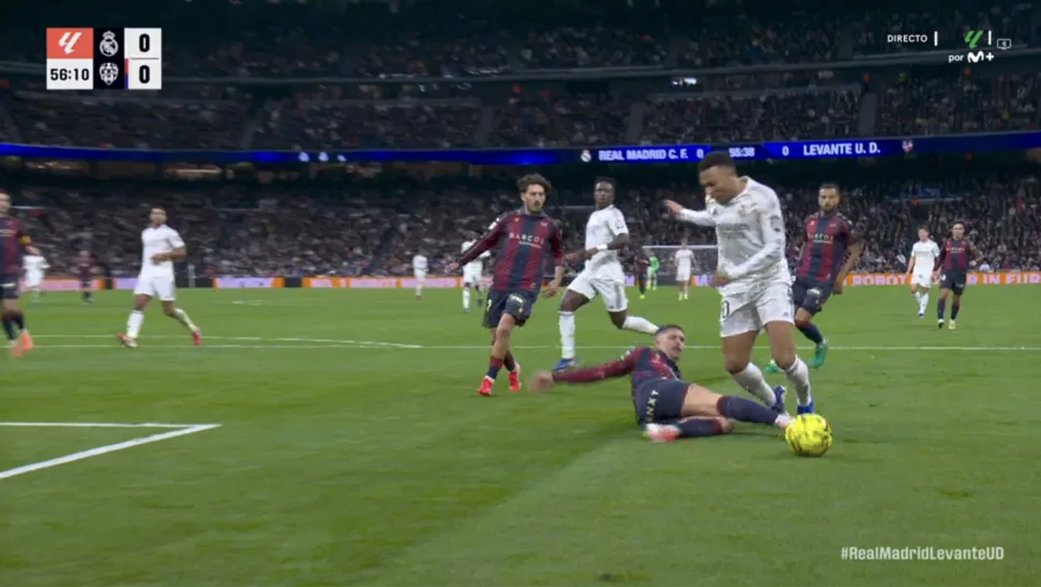 Килиан Мбаппе реализовал пенальти в матче с «Леванте» (2:0) и стал первым игроком в истории Ла Лиги, которому назначили 13 пенальти всего за 26 игр.