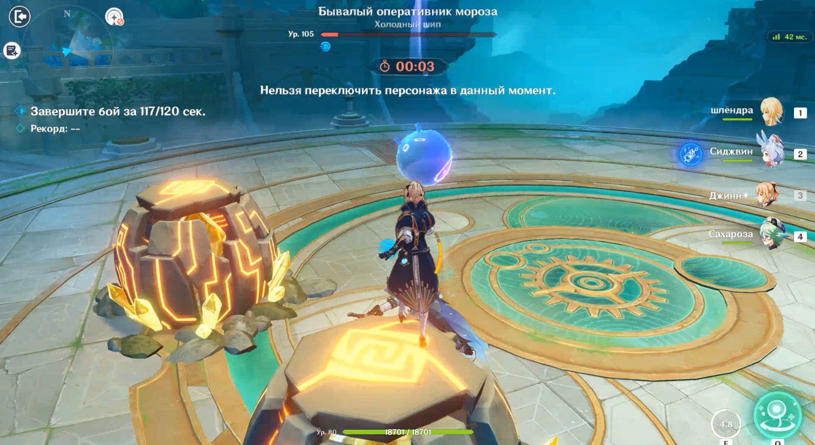 Пиздец, а я то когда сегодня в театре потел, ещё думал, что вот сейчас будет халявный этаж, пикну этого круглого робота, которого переагрвать буду и подожду пару минут командой своих слабаков. А тут бац, оказывается в противники к роботу электро слаймы прилагаются. Ну ладно, ролльнул куб для обновления противников на этаже - а там всё такая же тема. Пришлось выбирать стражей руин с гидро-слаймами. Но я думал, что мне просто не повезло.