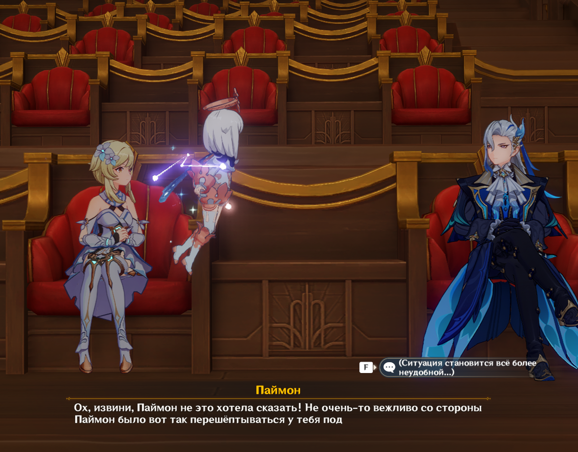 Блин, а если бы я сразу не пошёл к месту по заданию, а по театру пошароёблися - я бы увидел Фурину?