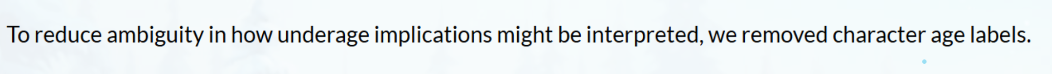 If, due to specific country or platform requirements, it becomes impossible to maintain service without requiring changes, we will not alter character designs. Instead, our service policy will be to apply country-specific restrictions, suspend service, or provide an adapted build as needed for that country.