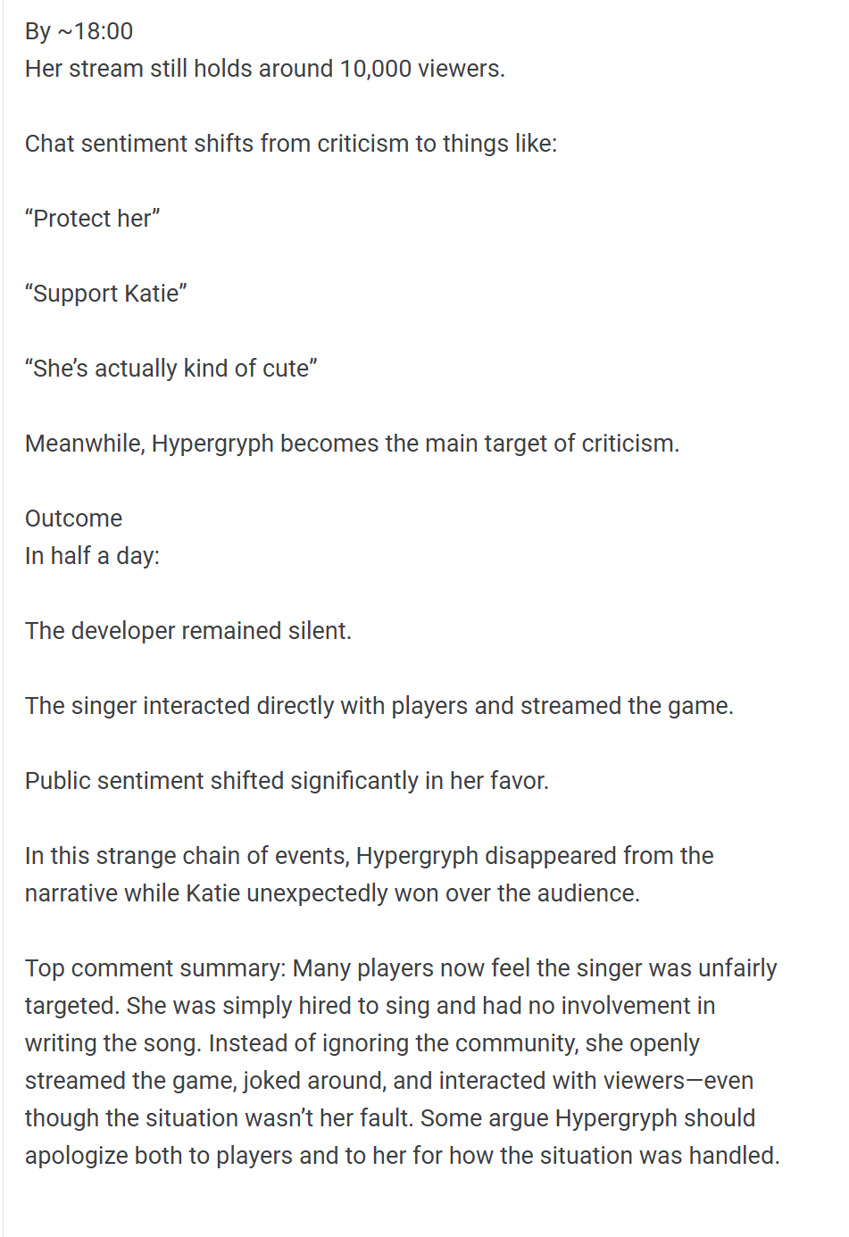 >>6568529 Я имел ввиду уровня наглости, типа распилов, спендингов (уже второй), цензуры, ВЫГОДЫ, пнг-скинов и прочего. Что она по табличкам отстает от сэнсея это понятно, но иногда потерется у ног своего идола может, как в прошлый месяц.