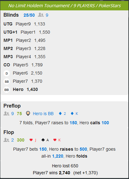 10) Если вас 3бетит человек, у которого 3бет ~2-3%, то с АК на префлопе нужно делать ФОЛД. Почему: вы не можете делать 4бет (т.к. диапазон по умолчанию сильный), а если сделаете колл: вам поможет доска с Кxx? Нет. QQ вам денег не отдадут, КК кулернут, АА выиграют. То же самое касается и Axx. Максимум что вы будете делать – это делить банк с оппонентом.