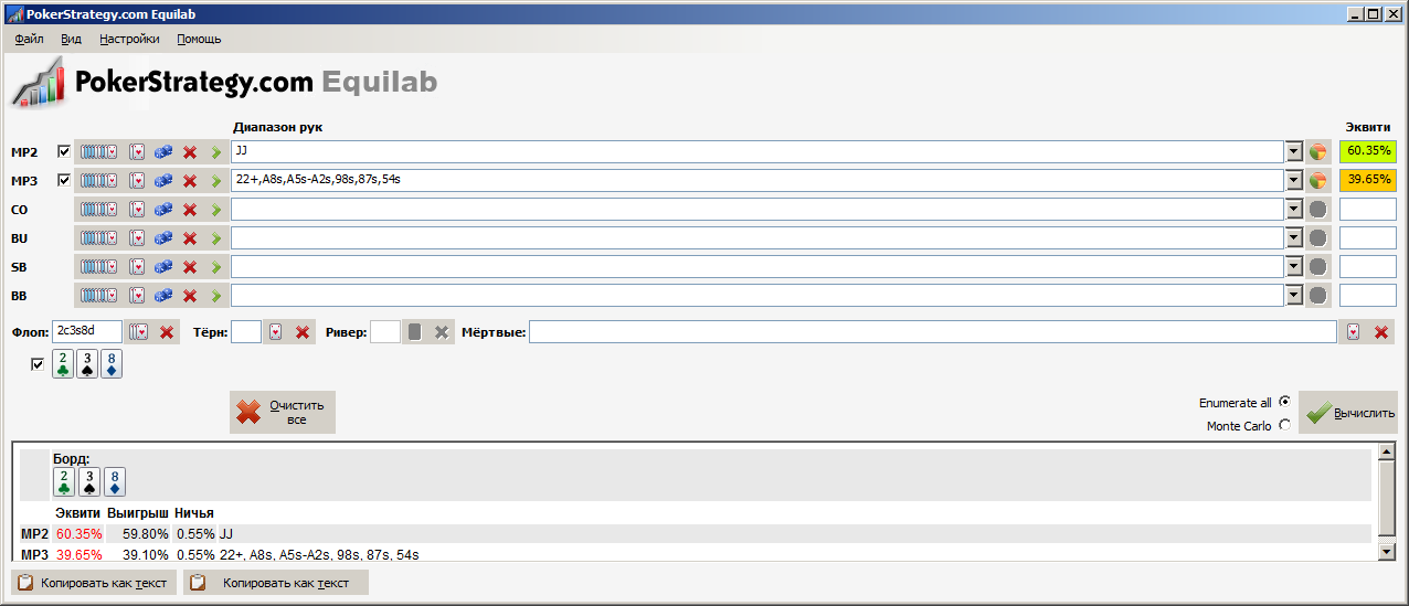 Посоны, я открытие сделал для себя только что. 22 имеет более низкие шансы на победу чем конекторы 65о-QJo, при том, что более высокие и низкие коннекторы уступают двойкам по эквити чому так выходит? Из за большей вероятностей ОЕСД дров?