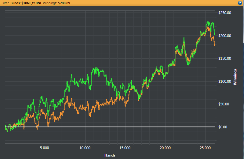 >>27508 Да, это за 3.5 дня. 7 часов в день. 450 рук/час. Звучит грустно. 10к в день я только один раз в жизни откатал в замазке (плюсовой). Больше не хочу, да и не способен наверное. Цели пока только краткосрочные: Перейти на нл10, его мне придется долго долбить, на нл25 с агрессивным брмом не полезу. И прояснить постфлоп во многих моментах.