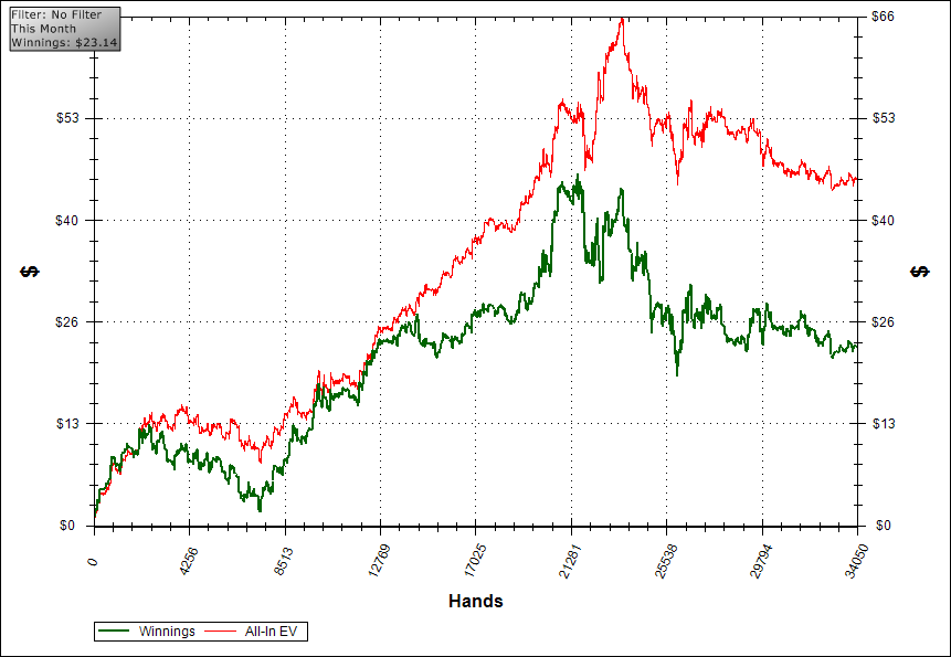 Спиздить 10 потов по $1 или 1 по $10 — разницы нет. Но маленькие поты случаются гораздо чаще, и именно в них надо рулить, чтобы выигрывать на дистанции. На вскрытии любой дурак выиграет. Просто мне в этой сессии не поперло, хуита. Зато на дистанции я стабильно буду держать в плюс красную, или хотя бы в ноль. Рейкоботы 18/16 соснули хуйца со своими графиками-елочками.