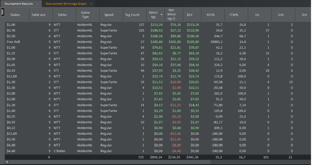 >>5025 >>5028 Вы наверное наигрывали то всего ничего, играли мало столов и короткими сессиями У меня за мою покерную карьеру (два года игры) 150 тысяч рук в кэше, 2500 хедзап СнГ, 1500 МТТ туриков. Это притом, что несколько раз бросал играть на месяц-другой, потом опять начинал. Общий профит 26к долларов.