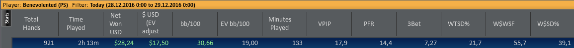 В общем, решил оставить пока нл50 в покое, не могу играть с 30БИ на новом лимите, хотя бы 50 надо набить. На фр нл25 очень трудно набрать 10-13 нормальных столов, поэтому подключил сх. Пока что впечатления очень положительные, без фиша раздачи почти не бывает. Сел катать поздно, поэтому так мало.
