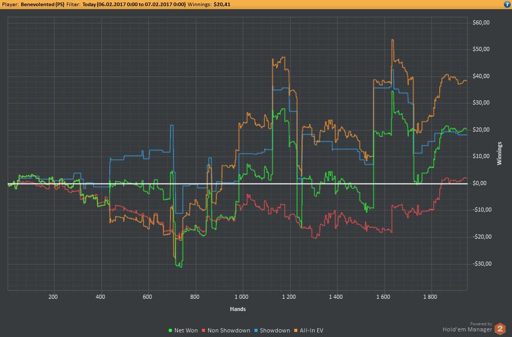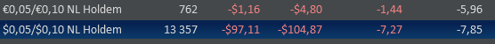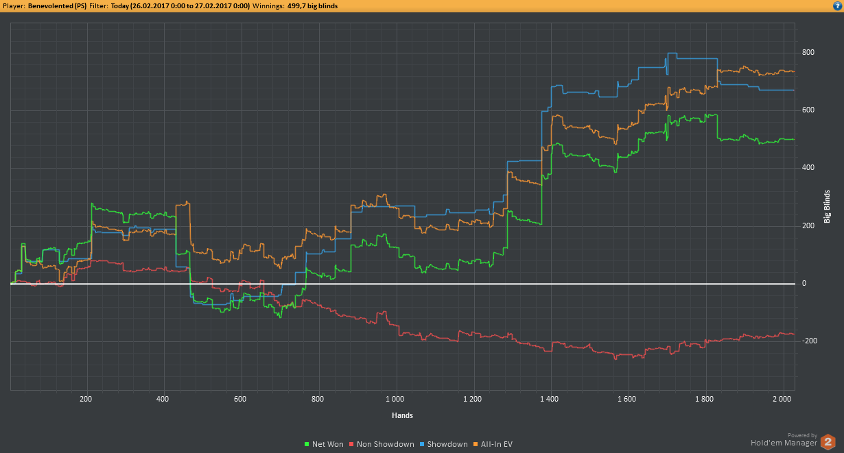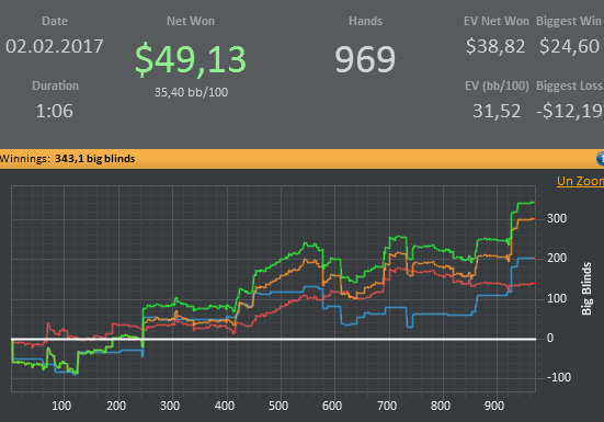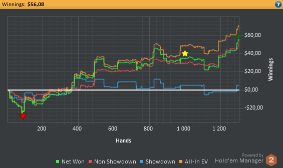 Сегодня опять почти не играл, пришлось по делам уезжать. 700 рук на нл2, 300 на нл10 зум+обычные столы. Катал бы ещё, но надо график хоть какой-то соблюдать.
