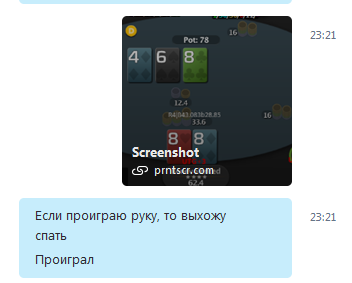 Просыпаюсь утром, осознаю, что за ночь нагриндил +$70, вспоминаю руки, понимаю, что не спал ночь. В скайпе кто-то левый пишет, просит помочь понять, с фишом он играл или с шортом. По сайзингам приходим к выводу, что это был шорт без докупки. В гб кто-то прокоментил ночную катку. Просыпаюсь ещё раз. Денех нет!