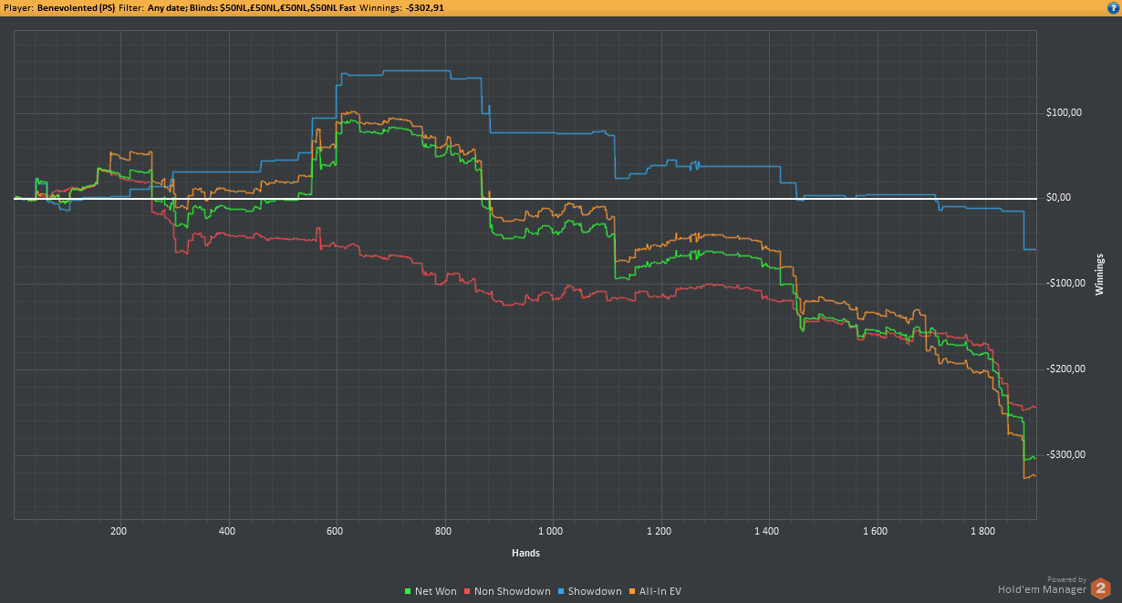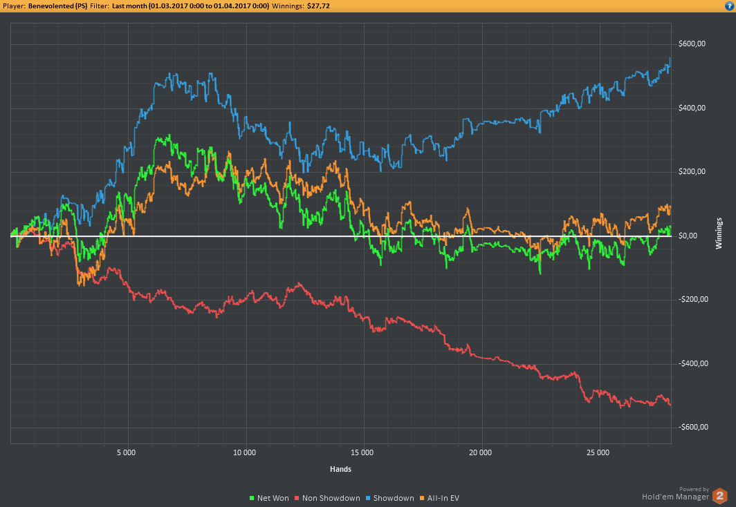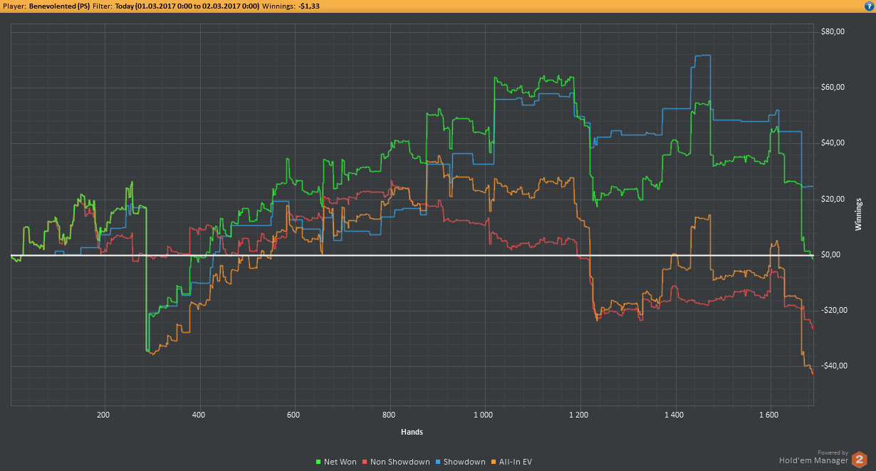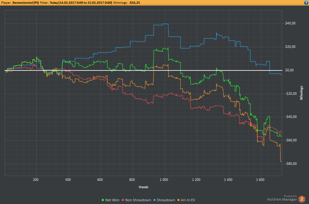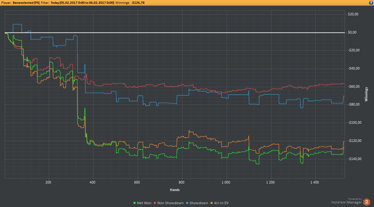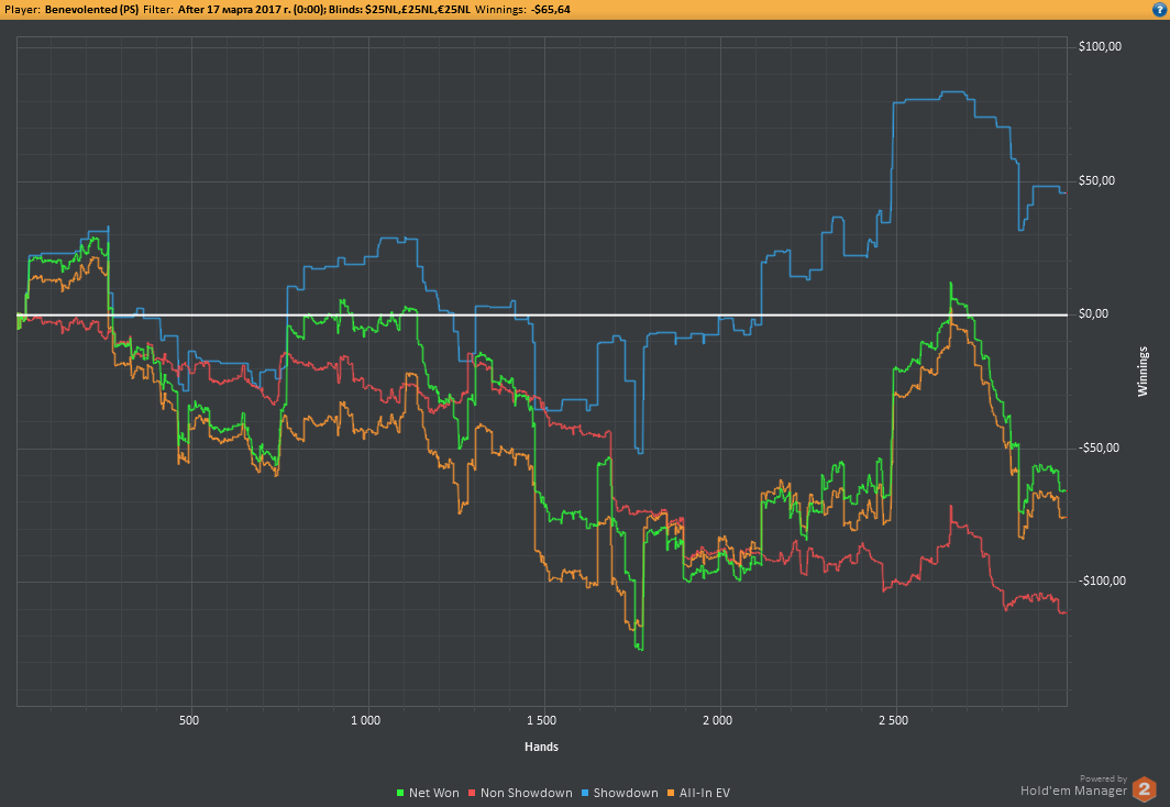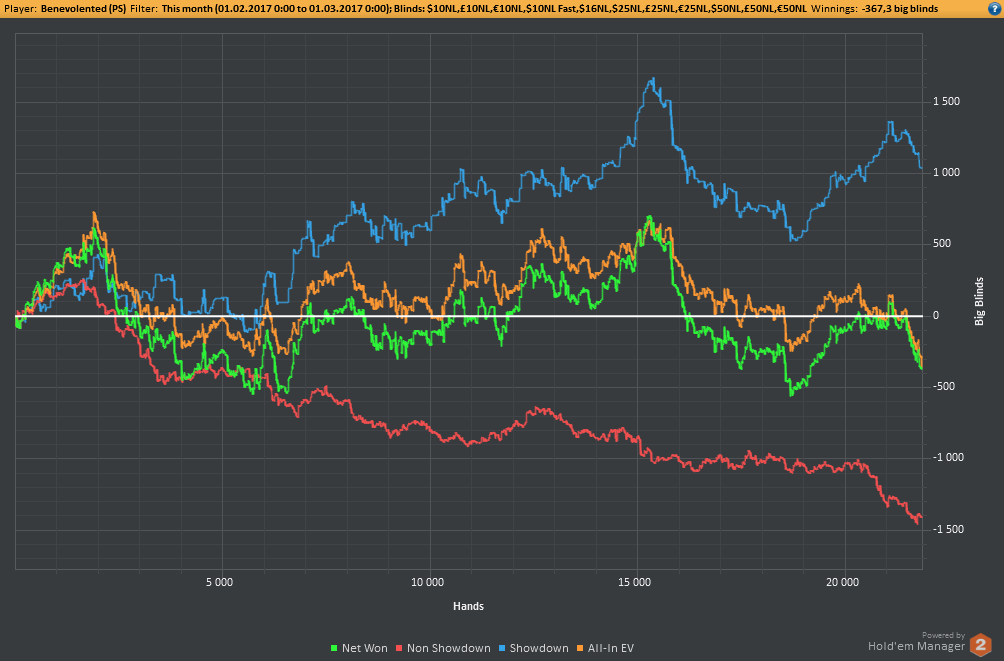 Аномальный февраль, такой аномальный. Чтобы не быть голословным, кину график нл10 отдельно. Несомненно, мой худший покер за всё время. На днях ещё надо будет купить ТО, триал кончился. Уже начинаю жалеть, что не купил тильт брейкер, в этом месяце он бы пригождался мне через день. Если март начну нормально, то точно куплю. 2БИ рабочего лимита не жалко, чтобы перестать заливать эти бай-ины десятками.