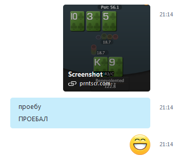 http://www.handconverter.com/hands/3022664 Ayyyy lmao. Префлоп пояснять не буду, по шоудауну сами можете догадаться. Я бы ещё 10 раз подумал, падать ли, если бы не сраный доппер.