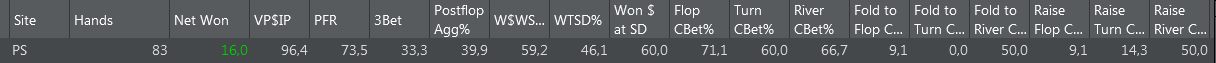 Заинтересовался блефами и балансом - игрой от своего ренджа. Но за столом пока не представляется возможным распределять диапазон по текстуре борда, потому что я эти свои диапазоны даже не знаю и подсматриваю скрины во время игры. Так что тупо поливал бетами с блокерами и всем, что имеет эквити, перекос на лицо. Раздачи потом поскидываю мб