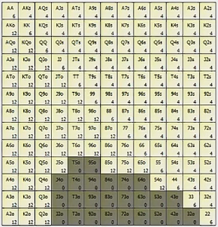 Почему блины считаются самыми невыгодными позициями, типа, там автоматически сливаются 50bb/100 на sb и 100bb/100 на bb? Это плата за то, чтоб посидеть полный круг, поэтому из-за стола не выходят, не отсидев свой "бесплатный" утг. Лучше говорить, что на каждой позиции ставишь вслепую 0.25bb для шмакса и руку надо играть, если вр будет лучше, чем -25bb/100. Но такой формулировки я ещё не встречал. ОП