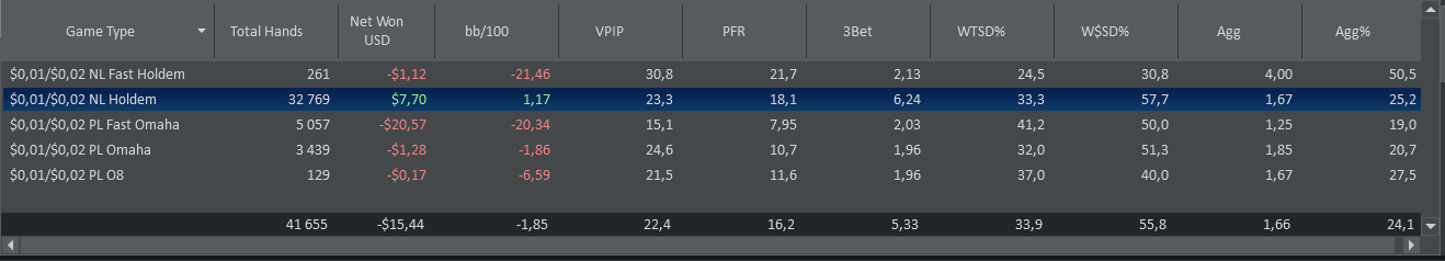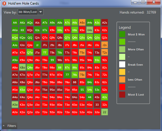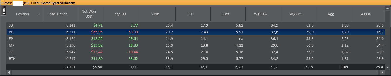 Остальные раздачи потом, сейчас вкидываю статы за все время. Чет сьютед бродвеи и средние сьютед гапперы в минус. Некоторые карманки тоже. Зум омаха зло, закатал 20$ и даже не помню, как и когда умудрился, аштрисет. Чисто холдем, как ни странно, получился в плюс. По позициям Катофф минусовой шта?!, бб - черная дыра, засасывающая мои деньги. Ну, хотя бы лучше, чем если б выбрасывал каждый раз, тогда бы -124$ только я не учел, что стилят не каждый раз и часто бывает противостояние бб vs сб, где у первого позиционный перевес.