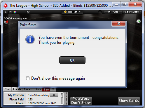 Я бы даже бровью не повел, если б это был просто фриролл, но это от pokerstarter и попадание ИТМ критично! Начисляются очки и в конце месяца подводятся итоги. В прошлом месяце я был в elementary league и получил 6$, сейчас уже в high school league с адекватными призовыми. За первое место 150$, например. Для меня это достаточно, чтобы снова катать кэш, не могу же я проебать 75 БИ, в самом деле, всему есть предел. Кроме переездов. Хуй мне, а не первое место.