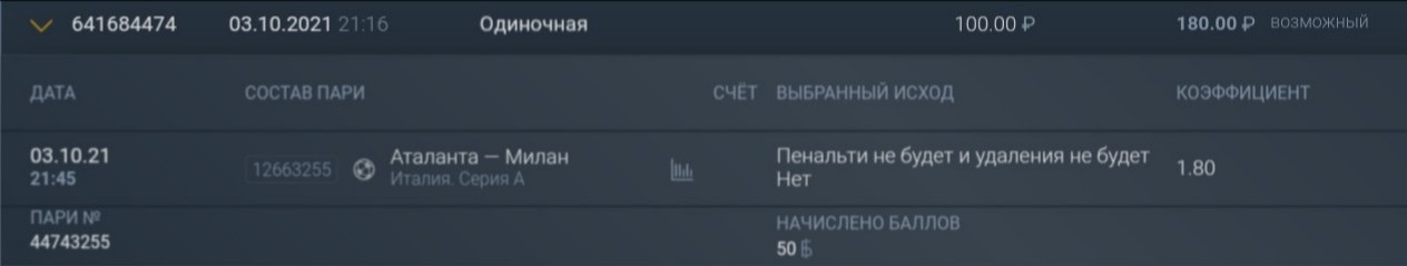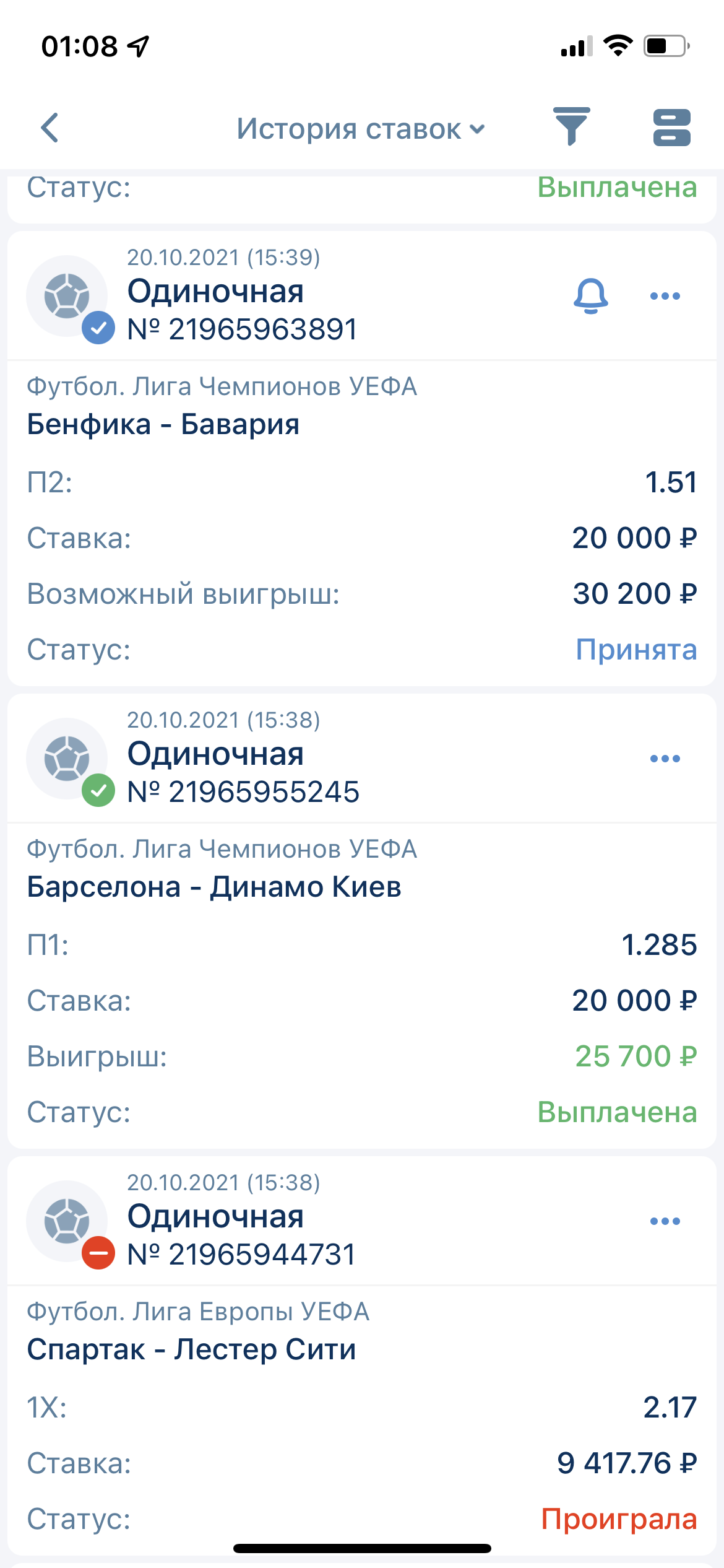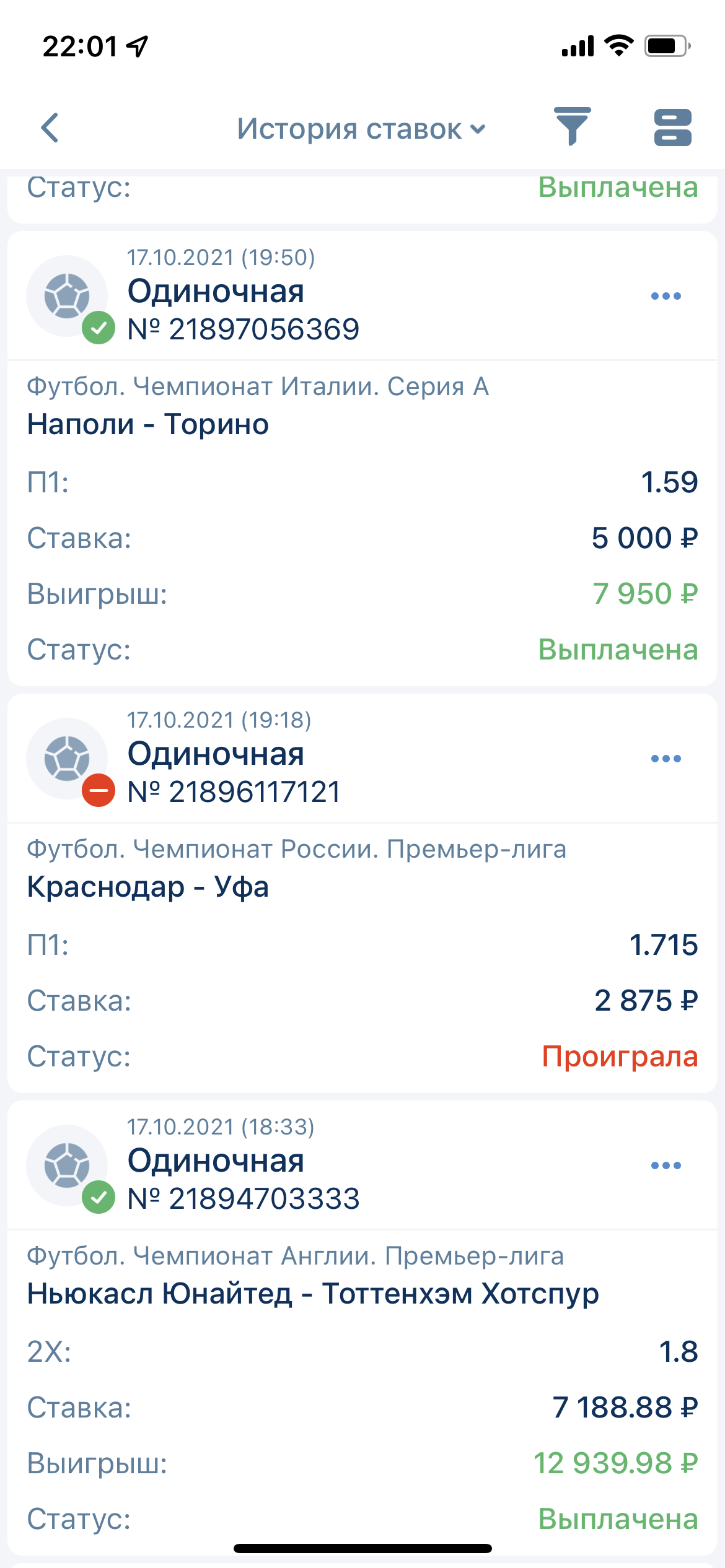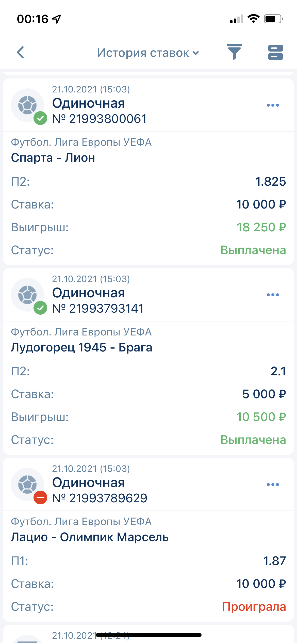 Однажды я сделал ставку на последние гроши и выиграл 27к. Хуй знает что там за маловероятное событие было, но это был футбол, год 2015 наверно. Было пиздец как приятно умножить свои 300 рублей в десятки раз, но я подобных раскладов больше не встречал.
