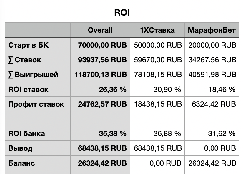 Есть правда один подводный камень. До 29 сентября все ставки были в конторе, с 30 сентября появилась часть виртуальных ставок, а теперь все ставки виртуальные, я их нигде не фиксирую. Так не охота ещё и сами матчи записывать. На мой взгляд, нет в этом никакого смысла. Но для полноценного учёта похоже надо было и это делать.