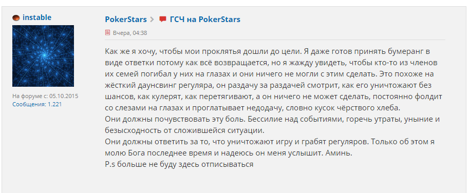 Покерстарс параша подкрученная для ботов. Живым людям там делать нечего как и на всех инторнет помойках, там шансов играть и выигрывать столько же сколько в азино три топора.