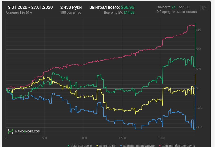 >>43888 20бб 4бет, ебанько коллирует все мисснутые бродвеи, ну переехал хуль, просто от чуйки ебанул и выиграл по сути. >>43889 300к наиграл примерно. Большинство рук на нл5. 8к рук на 50нл в плюсе, все бабки слиты на нл200+ где-то рук за 1000. Играю обычные столы, охуеваю со своего ебланства с переходами по лимитам. Про рейзы не я хуйню писал. Я вот зум 2-10нл уважаю зато. Обычная сессия у меня проходит примерно так. Деп на 10 баксов, 500-2000 рук в зуме нл2 4 стола, еще примерно столько же на 5-10 нл. Потом спать ложусь в 5 утра. Просыпаюсь еще хуярю, набиваю короче за пару дней баксов 100-200 и сливаю все нахуй на нл100. В последнее время я серьезно поработал над психологией и держу себя в руках. Сегодня имея 37 баксов со вчерашней сессии играл всякие хуйни сателлиты в пределах 50 центов. Выиграл два билета по 109 баксов. Буду играть турики. Короче до Сочи пока просто всякой хуйней страдаю, дрочу эквиляторы, хуяторы, айсимайзер оформил подписон сегодня, дрочил сидел тоже. Короче как-то так пока что.