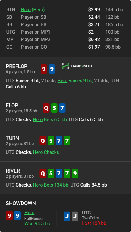 Часто встречаю такую игру и каждый раз думаю, что сеты и стриты так пушить слишком тупо даже для фиша. Шас захотелось вскрыть. Надо взять за правило подобные коллы делать максимум в 100бб эфф. стеках, тут всё-таки было аж 125+
