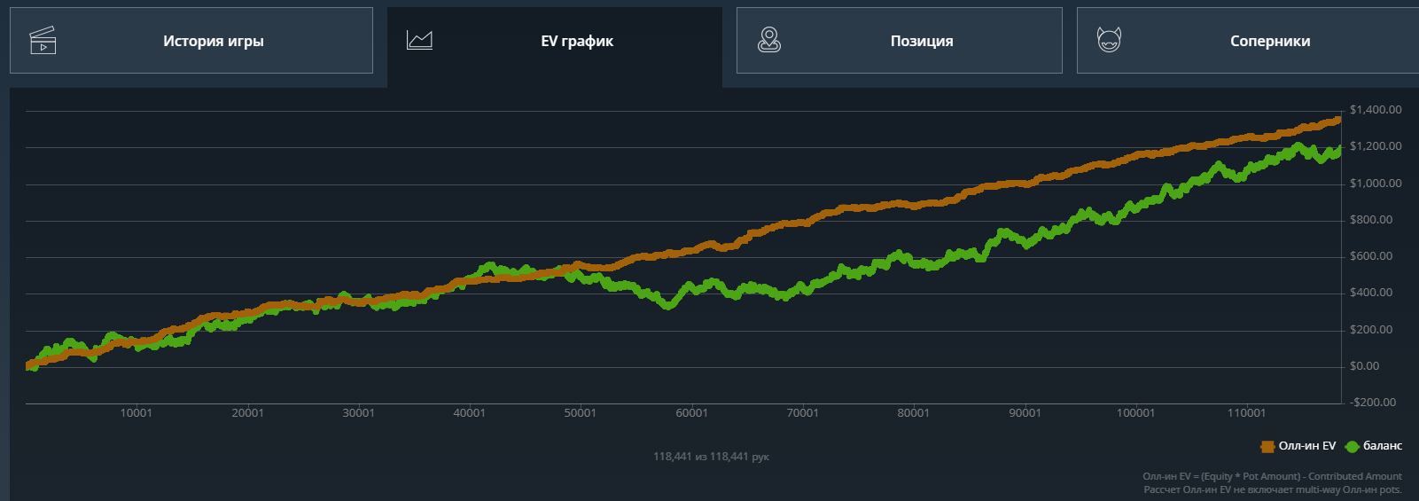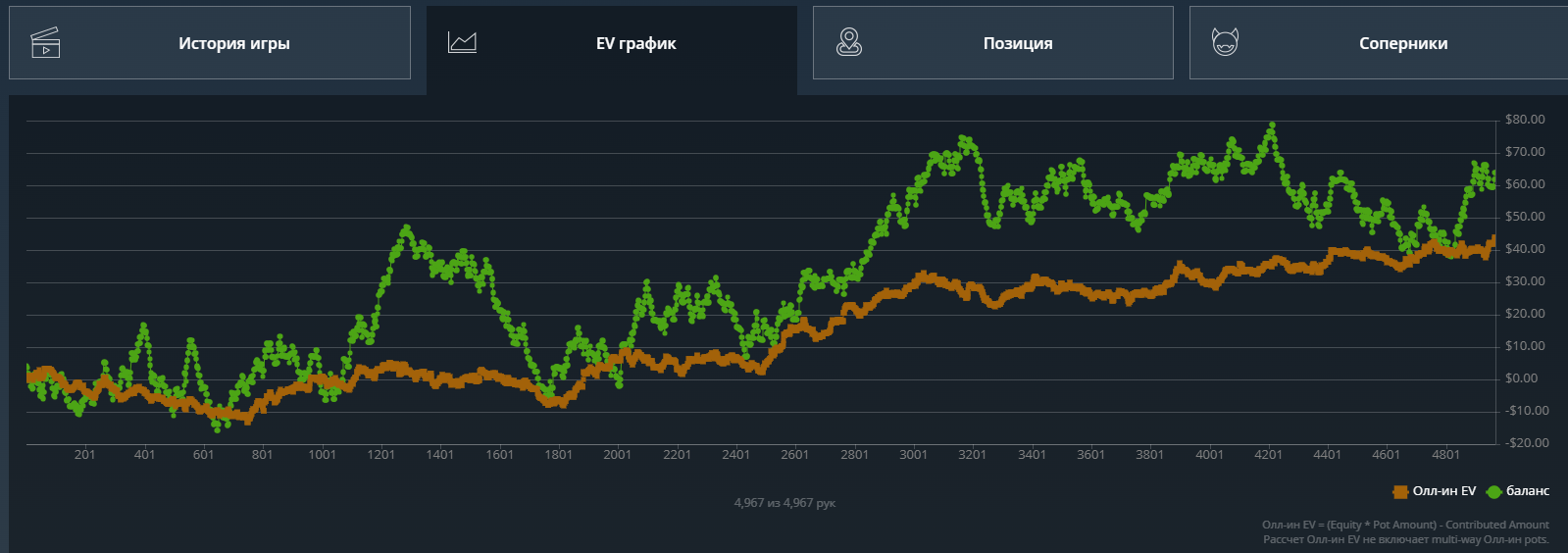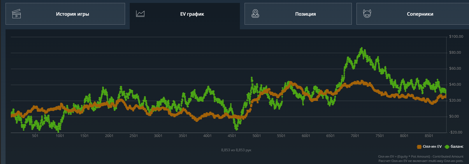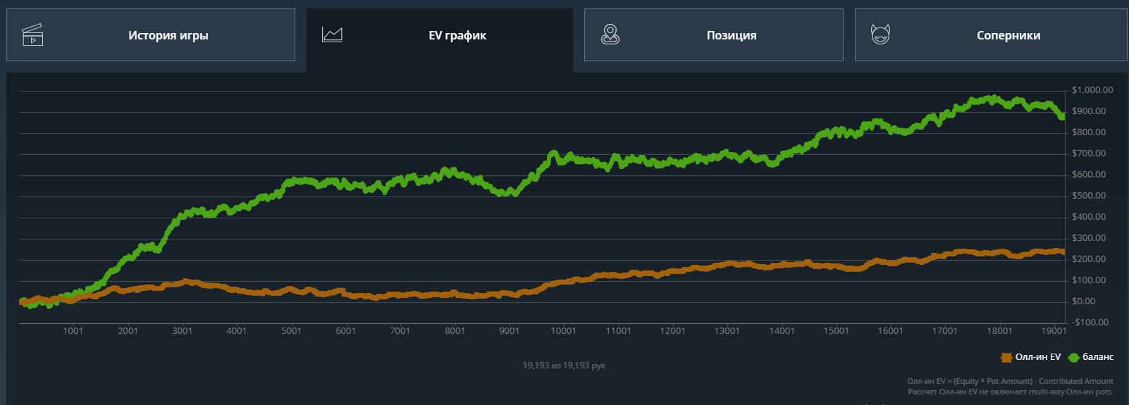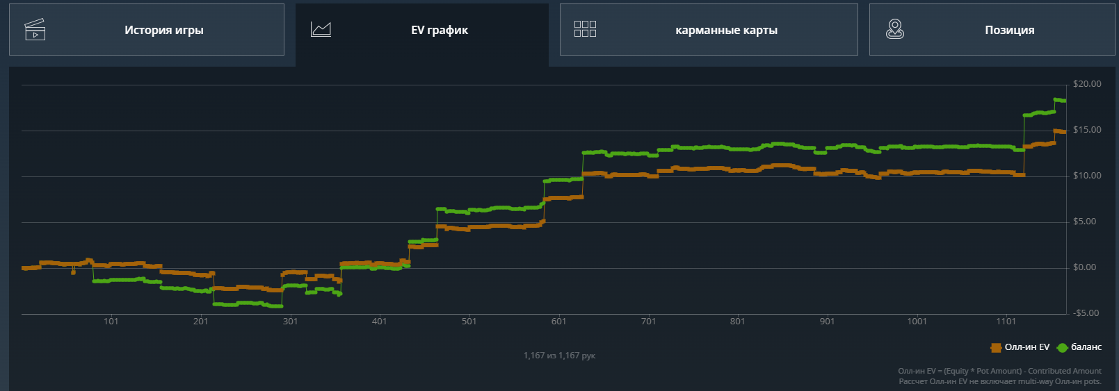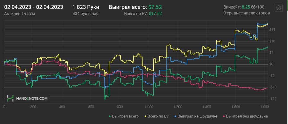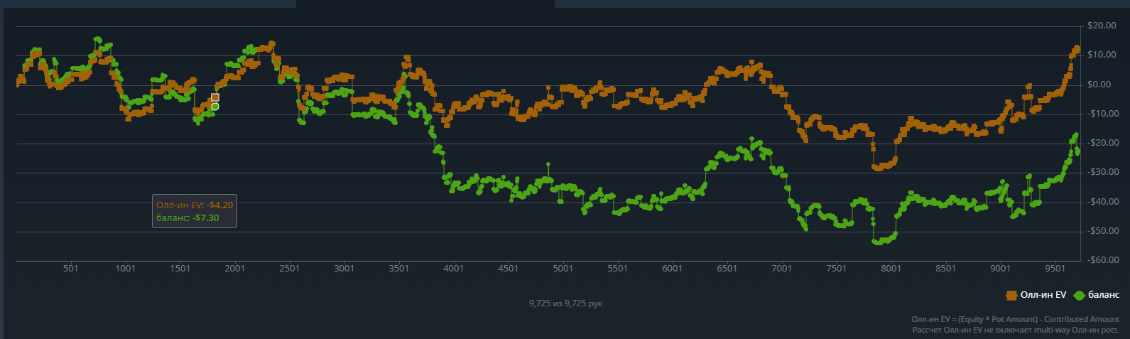 Какого-то хуя не могу нормально плюсануть по ev, 20$ за 8к рук это просто катастрофа из-за огромного рейка. Вроде ничего не менял в игре. Джек не выпал, по кассе -161.31