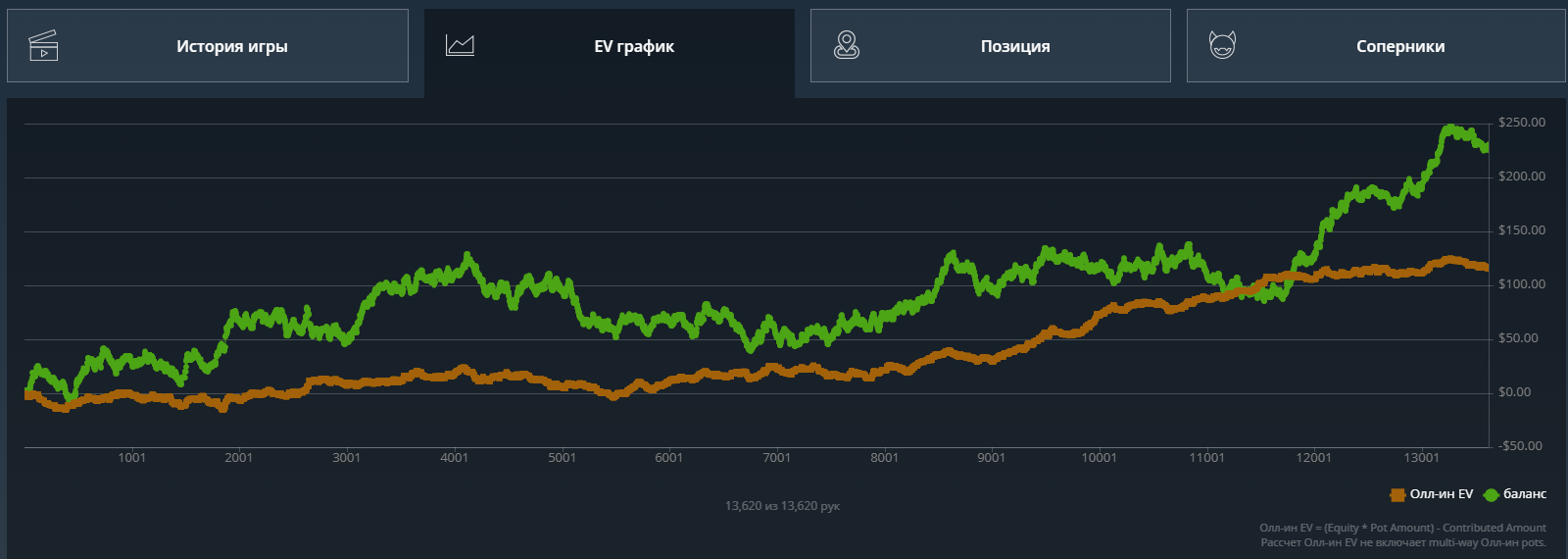 Кароче, решил что залив по ev 50 баксов тоже считается, все же эта линия самая важная, важнее даже реального выигрыша и катапультировался со столов.
