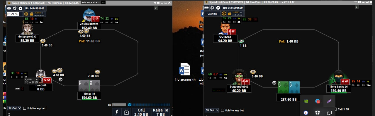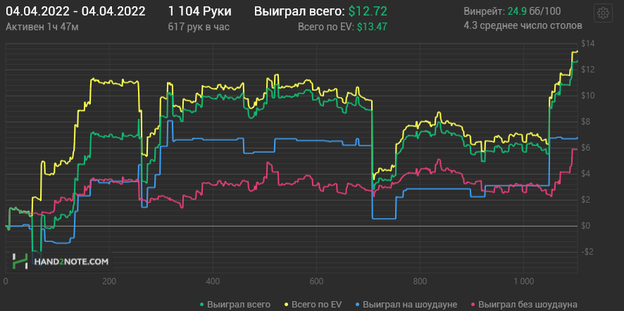 >>48970 >Какой у тебя вообще опыт? С 2013, когда задалбывает работа, сажусь катать. Максимум 50 по мсс играл в 2015. До 2021 микро. С 2021 в мелком покер-руме работаю. Там стат нет. Последний год катал с автобалансом 3-4-максы кеш, спины и всякие лудки за ЗП. Но в плюс, как ни странно. >любой колл или рейз намного более тайтовые, чем за обычными столами. Понимаю, зум старзы играл. Но тут ночью и отбитых полно. Противные реги тоже встречаются порой. >И чего ты сидишь в 260bb В сильно фишной состав полным стеком сажусь, выгоднее. Нл10 бы тоже БСС играл, но БР мелкий.. Соглы, дипы - это зло. 150 уже выхожу, тут просто как-то удачно раскормили меня за несколько сдач.