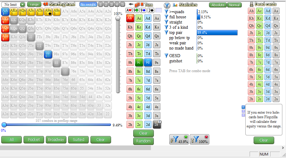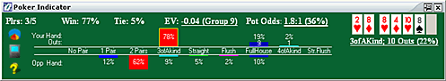 >>11337 >минимальную статистику по игрокам за столом Holdem Manager 2 >бы считал вероятности выхода карт Это какие-то глупости. Эквити аутов легко запоминается, а шансы банка, кажется, считает старсхелпер.