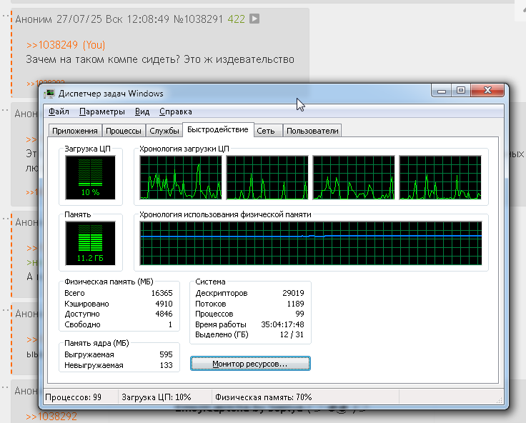 >>1038292 >Это еще один шизик, пособия по инвалидности только на такое хватило. Как видишь нормальных людей в разделе мало. Пособий от госцударства не получаю, конфигурация старая от 12 года, когда комп был куплен целиком, только видяшку апгрейдил 2 раза. И то не потому, что мне ее нехватало, а потому что Intel не умеет делать видеовыходы и я не мог сидеть на интеграшке из-за ряби на мониторе (глаза болели), а потом вентилятор на моей GTX650 просто сдох, я не смог его поменять и купил новую видяху на замену.