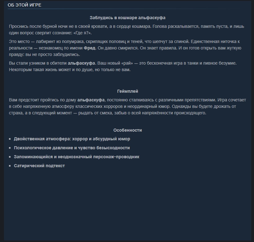 Жанр: Survival horror с элементами immersive sim Движок: Unity Команда: 5 человек