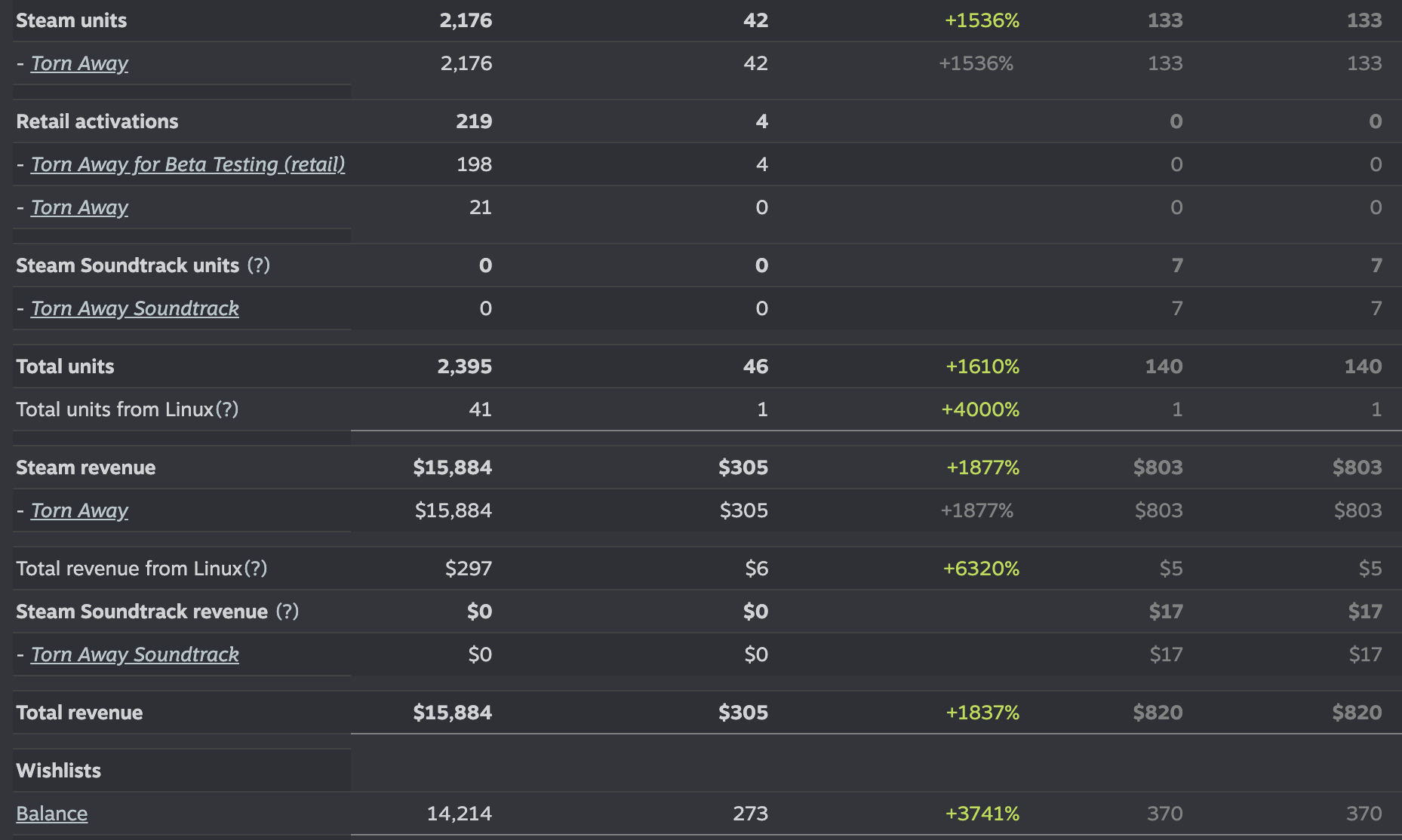 October 28th, I get this message from my partner and main investor – he's pulling out. Not because of Torn Away's sales, but due to the industry's overall climate. An interesting experiment, he says, but it's time to call it a day.