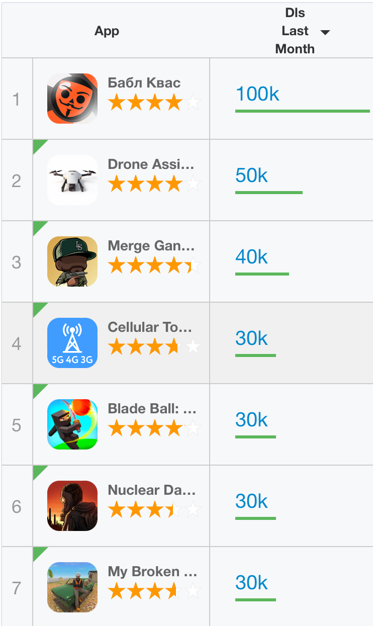 >>942610 >>вообще у меня был зловещий план создать сетку ютуб/тикток каналов с ИГРЫ НА АНДРОИД ЗА МЕСЯЦи проталкивать свои игры Хорошая идея, кстати. А есть сайты, на которых можно глянуть самые популярные игры недели/месяца? И прочие метрики Android игр?