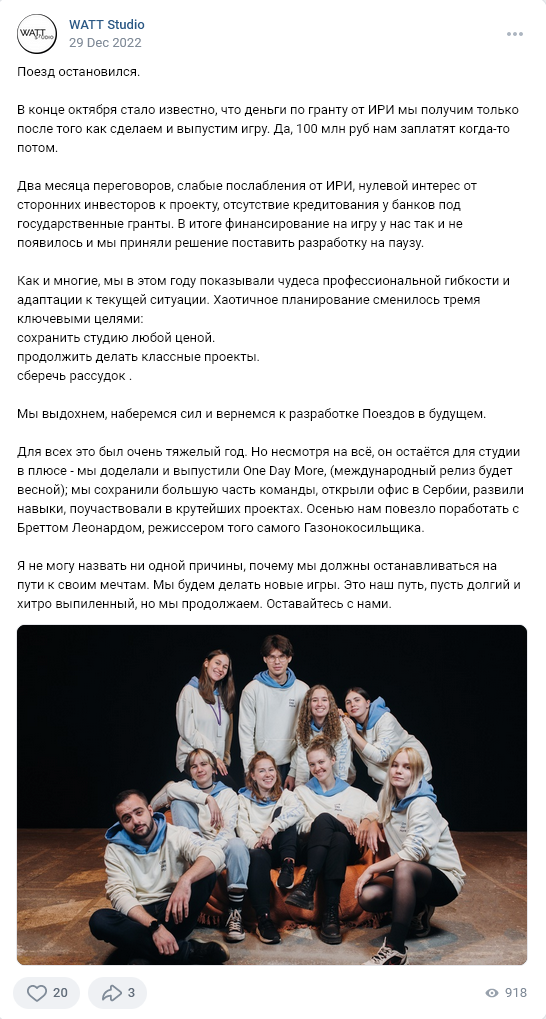 но в каментах ребята что-то подкидывают для размышления: > Мы сейчас в процессе юридического решения ситуации. Если коротко: заморозка релиза и отказ от переговоров — это нарушение зафиксированных договорённостей. Остальное комментировать не можем.