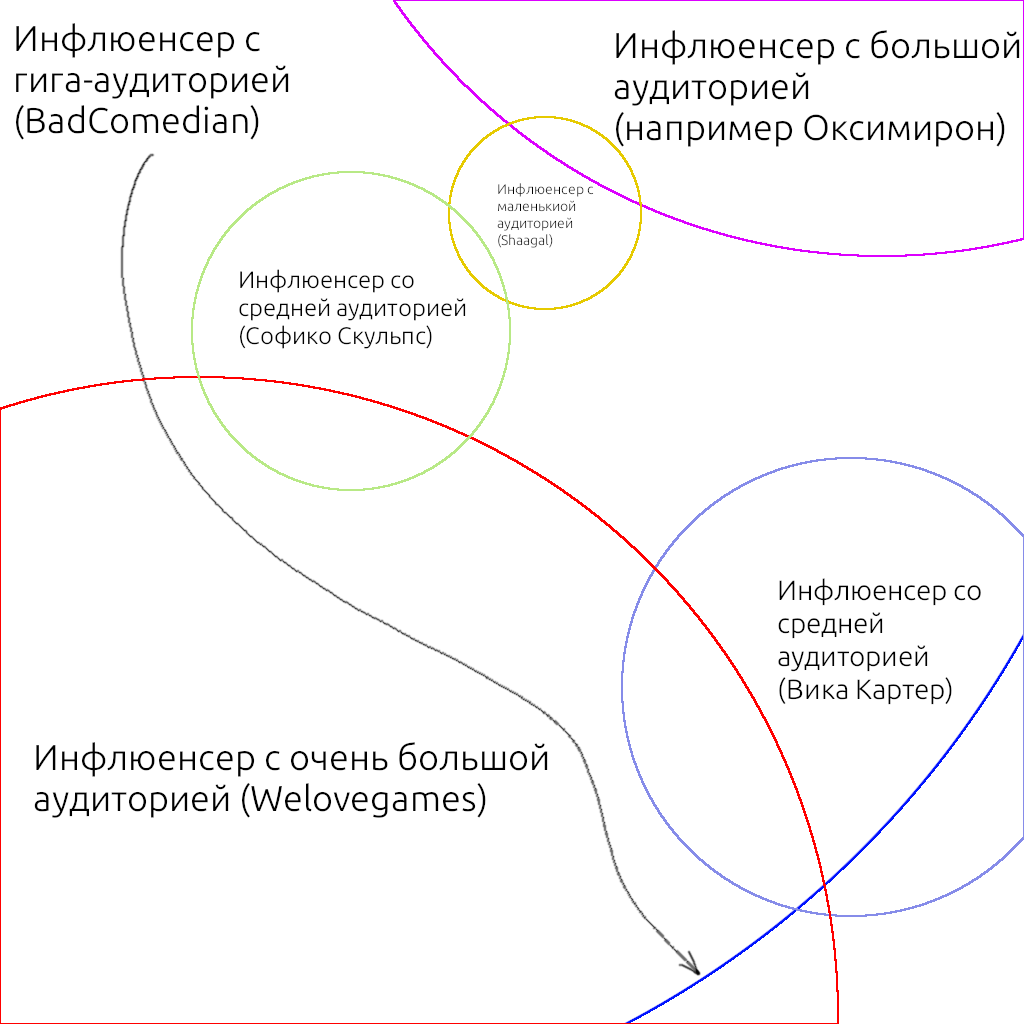 Можно сделать предположение, что покупаю рекламу у N инфлюенсеров со средней аудторией, можно добиться органического ре-поста у M крупных инфлюенсеров, так как будет пересечение аудиторий.